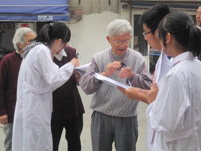 志愿者们在药店前设立医疗法律及健康保健的咨询点,替居民们解疑答惑,分发医疗法律和夏季养生保健方面的宣传单,并进行“嘉兴市居民及外来务工人员的医疗法律知识状况”的问卷调查,得到了当地居民的热情支持与配合。