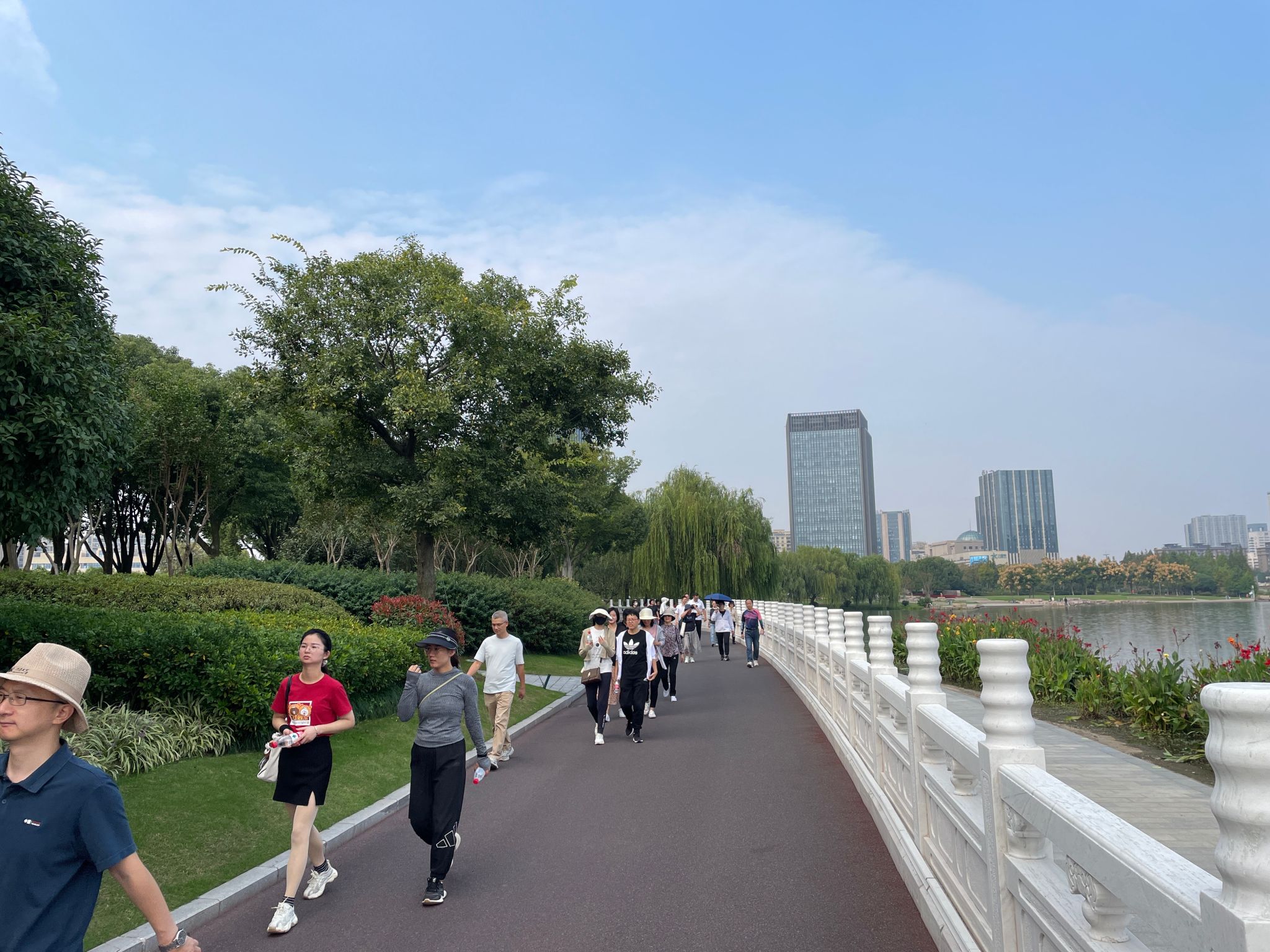 秋高气爽循绿道,波光潋滟赏秋风。本次健步走活动从梁林校区东门出发,途径展望路花海至姚家荡公园,全程九公里。大家兴致高昂、精神抖擞、阔步前行,丈量城市生态绿道,享受沿途美好自然风光,目光所及之处皆是浓郁的秋色。老师们边走边谈,交流工作生活,享受健步走带来的快乐,在健康、轻松、愉悦的氛围中完成了本次健步走活动,展现了yl永利集团官网登录全体教职工积极向上的精神面貌。