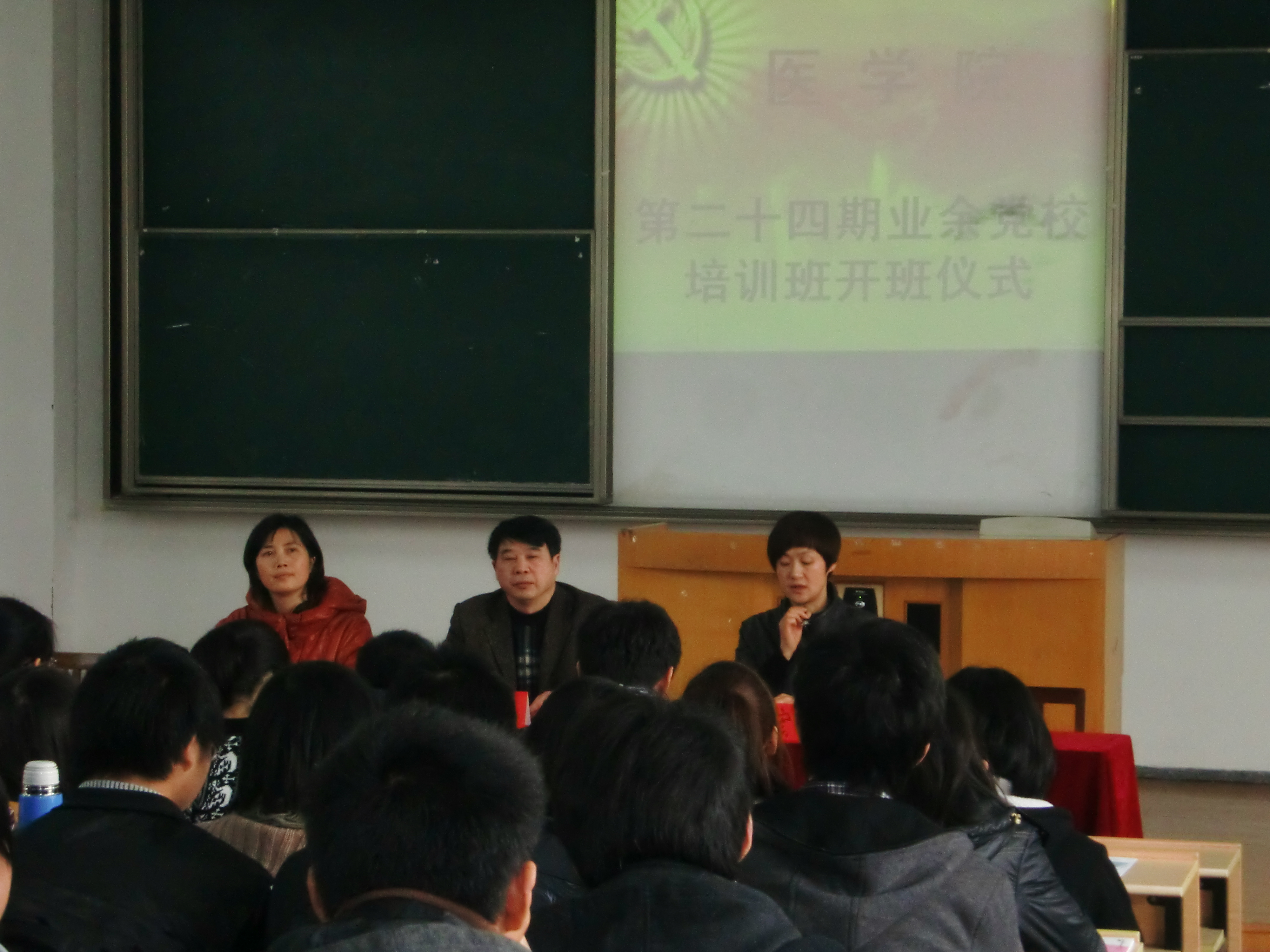 开班典礼在雄壮的国歌声中开始。首先,谢宏副书记宣读了第23期业余党校优秀学员名单并给予表彰。随后,医本102班闻建锋同学作为本期党校学员代表发言,承诺将严格遵守党校学员管理规定,积极参加党组织的各项活动,将以最饱满的热情来完成党课学习。张书记围绕“参加业余党校的重要性”和“怎样参加业余党校”两个方面作了深刻的讲话,同时希望学员们明确学习的重点,珍惜学习机会,能学以致用,具体落实到行动上,最后,他预祝第24期业余党校公司能圆满完成学业,顺利结业。