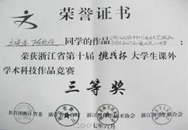 指导的员工作品获得浙江省“挑战杯”老员工科技竞赛特等奖、一等奖