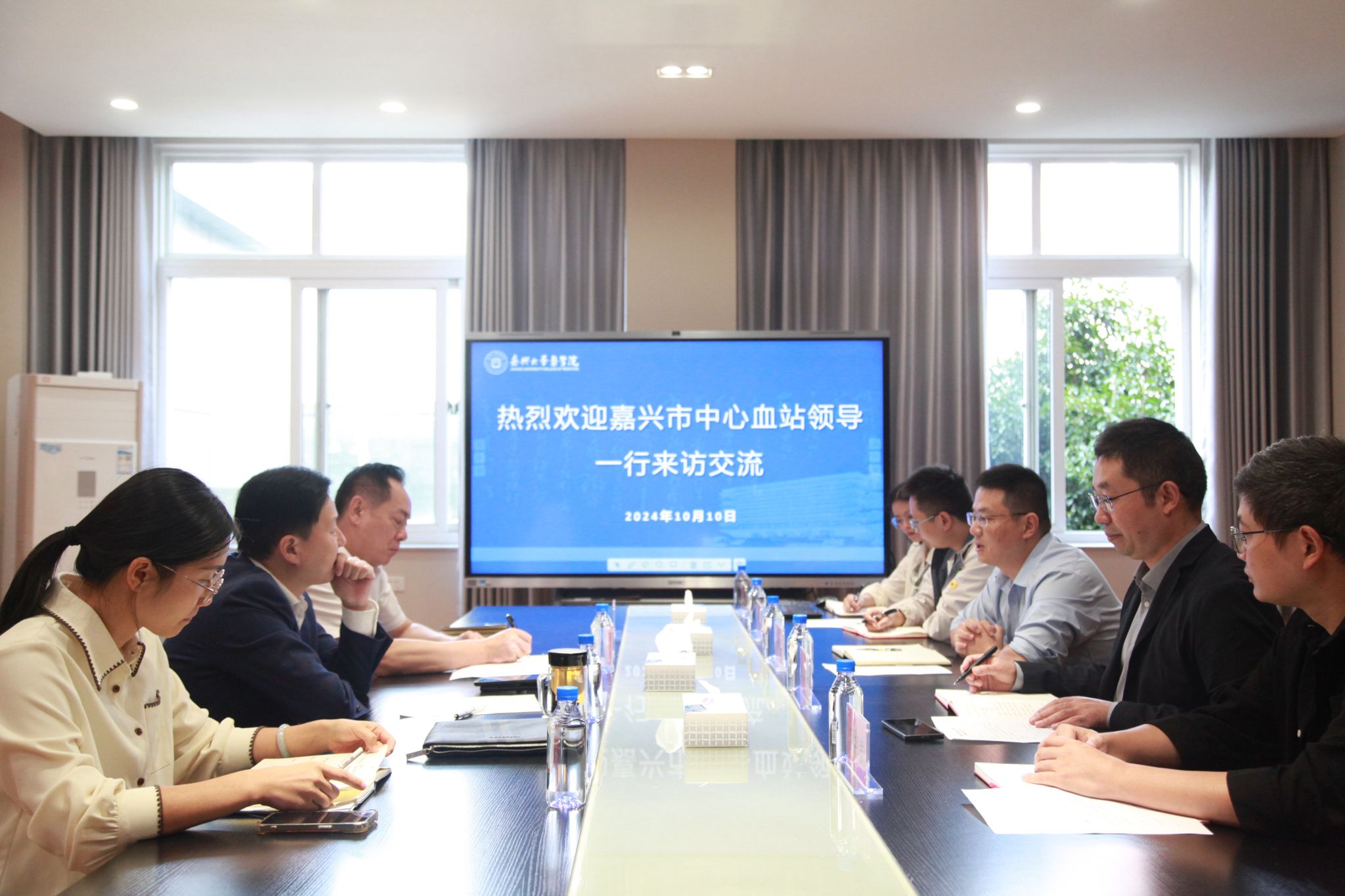 为加强yl永利集团官网登录与嘉兴市中心血站在人才培养和科学研究等方面的交流合作,10月10日上午,嘉兴市中心血站党委书记、站长徐军,副站长、输血研究所所长李建华,输血研究所主管李璋一行受邀来院交流访问。yl永利集团官网登录经理何治、党委书记陈云飞、副经理孙李丹等出席此次交流。