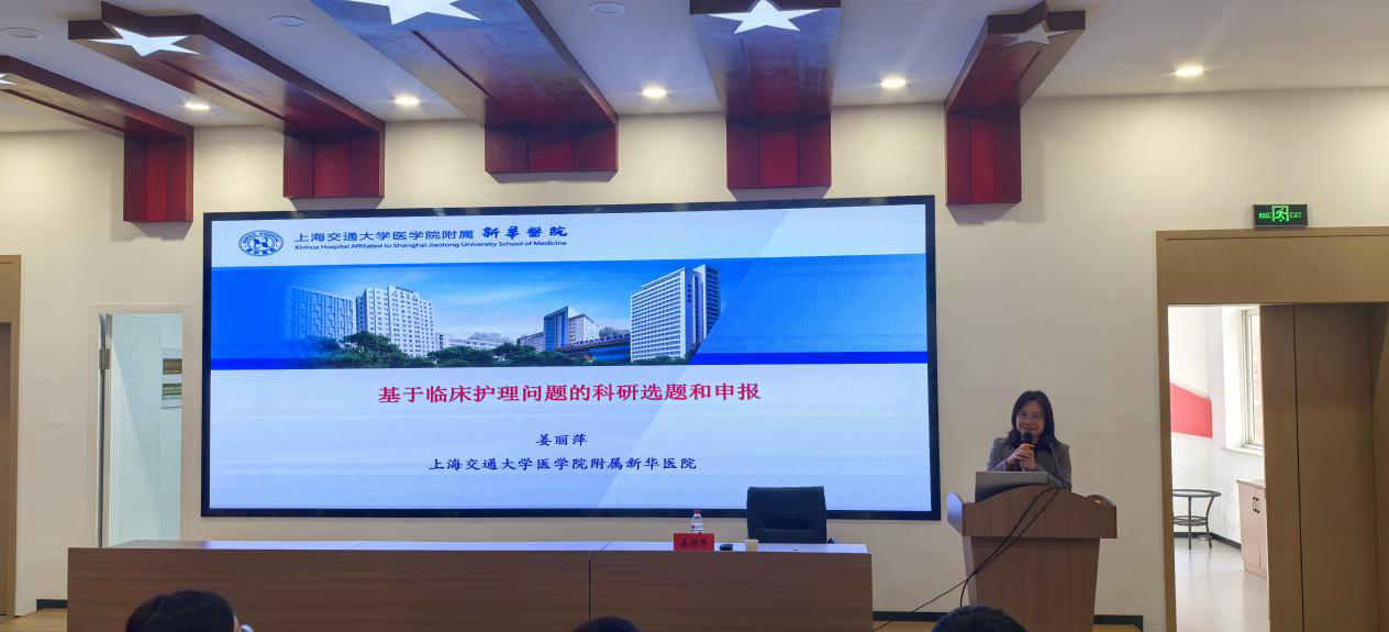 姜丽萍教授做了题为“基于临床护理问题的科研选题和申报”的学术讲座。详细阐述了上海交通大学yl永利集团官网登录附属新华医院的建设历程以及其突出的学科优势,概述了当前国家对护理学科的相关政策导向,分享了照护支持及创面修复领域取得的研究进展和研究经验。同时结合国家自然科学基金的申请经验,指导教师如何洞察临床问题并据此进行课题的选择与展开,与现场师生展开了充分的交流讨论。姜丽萍教授的报告内容丰富而引人入胜,拓宽了师生的教科研思路,激发了师生们的极大兴趣。在提问环节,大家踊跃提问,积极互动,气氛十分活跃。
