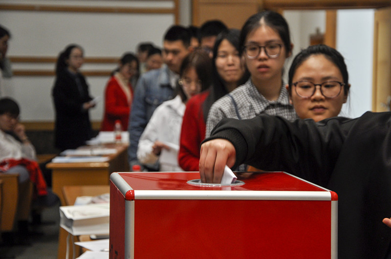 本次大会共有27名候选人参加员工会常务委员会及共青团委员会的竞选,他们通过现场演讲的方式进行了竞职演说。各位代表认真履行自己的职责,本着民主、公平、公正的原则,采用无记名投票的方式选举产生了新一届团委干部和新一届员工会干部,有7名候选人当选共青团委员会委员,有15名同学当选新一届员工会常务委员会委员。