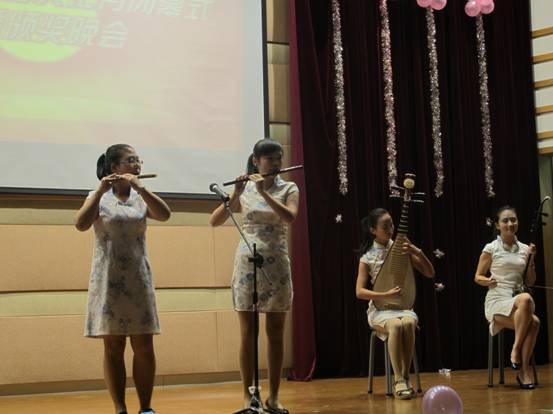 优美的古典舞,刚劲的太极拳及十佳歌手的歌曲串烧之后,团总支书记赵丽萍老师为街舞社、英语协会、国标协会和书画协会4个优秀社团颁发奖状。各优秀社团也为同学们介绍了各自社团的成长历程。英语协会的《新白娘子传奇》俘获了不少同学们的心,优雅的国标舞《独角戏》则让观众目瞪口呆。之后,由学工办杨玲飞老师为“爱之星”手语社和兰心惠质协会颁发最佳社长风采奖。又一轮精彩节目后,党总支副书记谢宏老师为医疗协会和荧光爱心社颁发了今晚的精品社团奖。本次晚会以赏心悦目的《青花瓷》扇子舞和脍炙人口的越剧表演《十八相送》走向尾声。