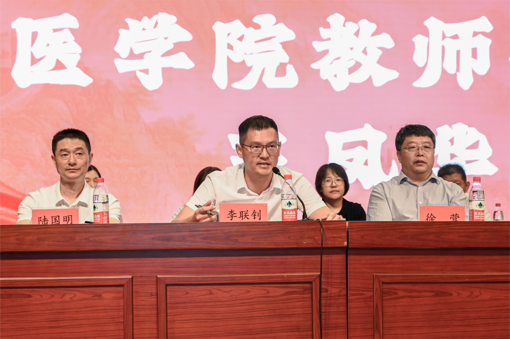 院员工会主席团执行主席医本221班刘铭锌同学作为员工干部代表发言:请告别昨天、把握今天、奔赴未来,让我们怀着对医学事业的热爱和热忱,牢记精诚仁爱的院训,学思用结合、知信行合一,用点滴努力汇聚汪洋大海,为推进人民健康事业高质量发展贡献青春力量!