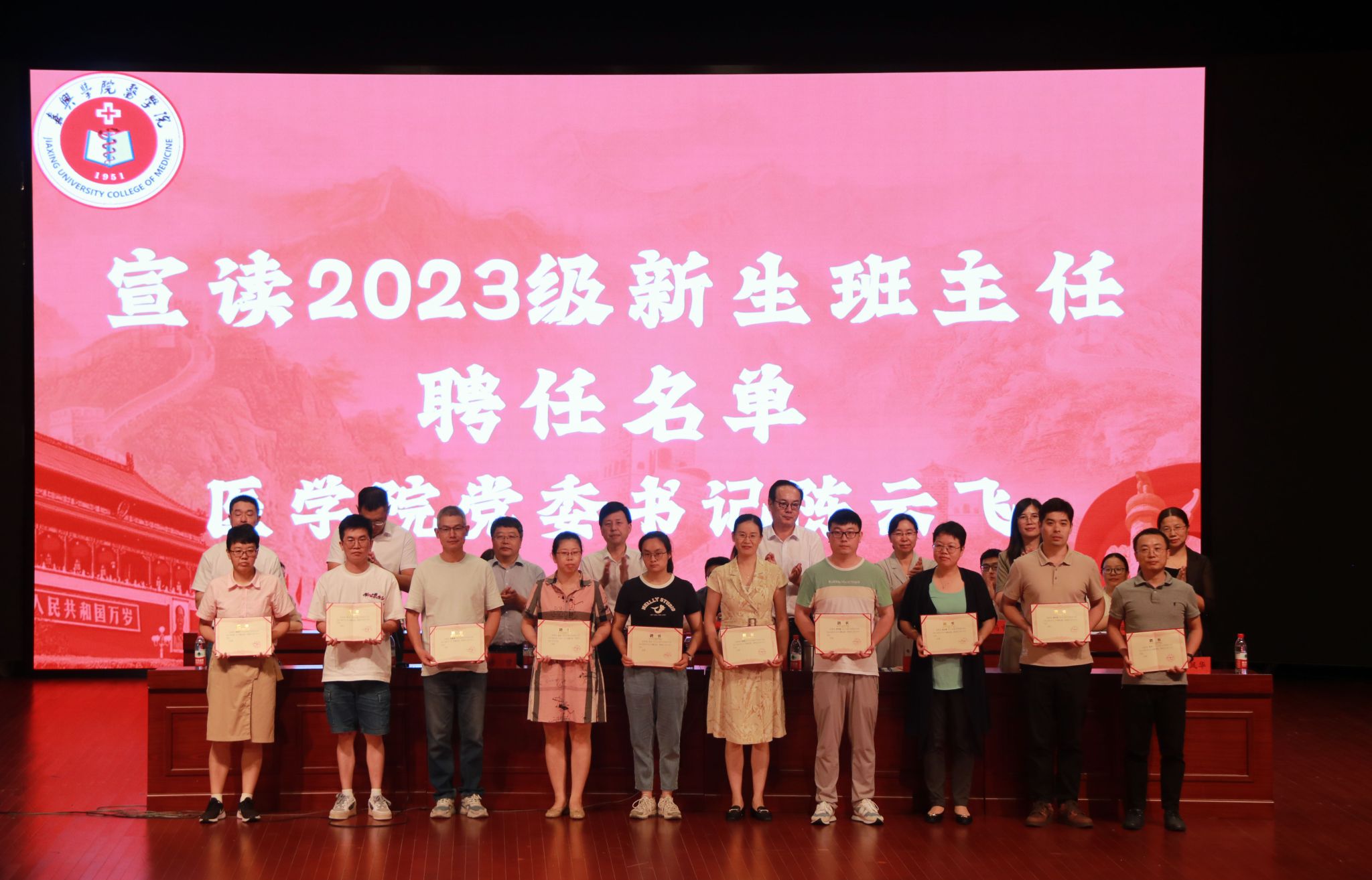 随后陈云飞书记宣读2023级新生班主任聘任名单,党政班子成员为班主任颁发聘书。