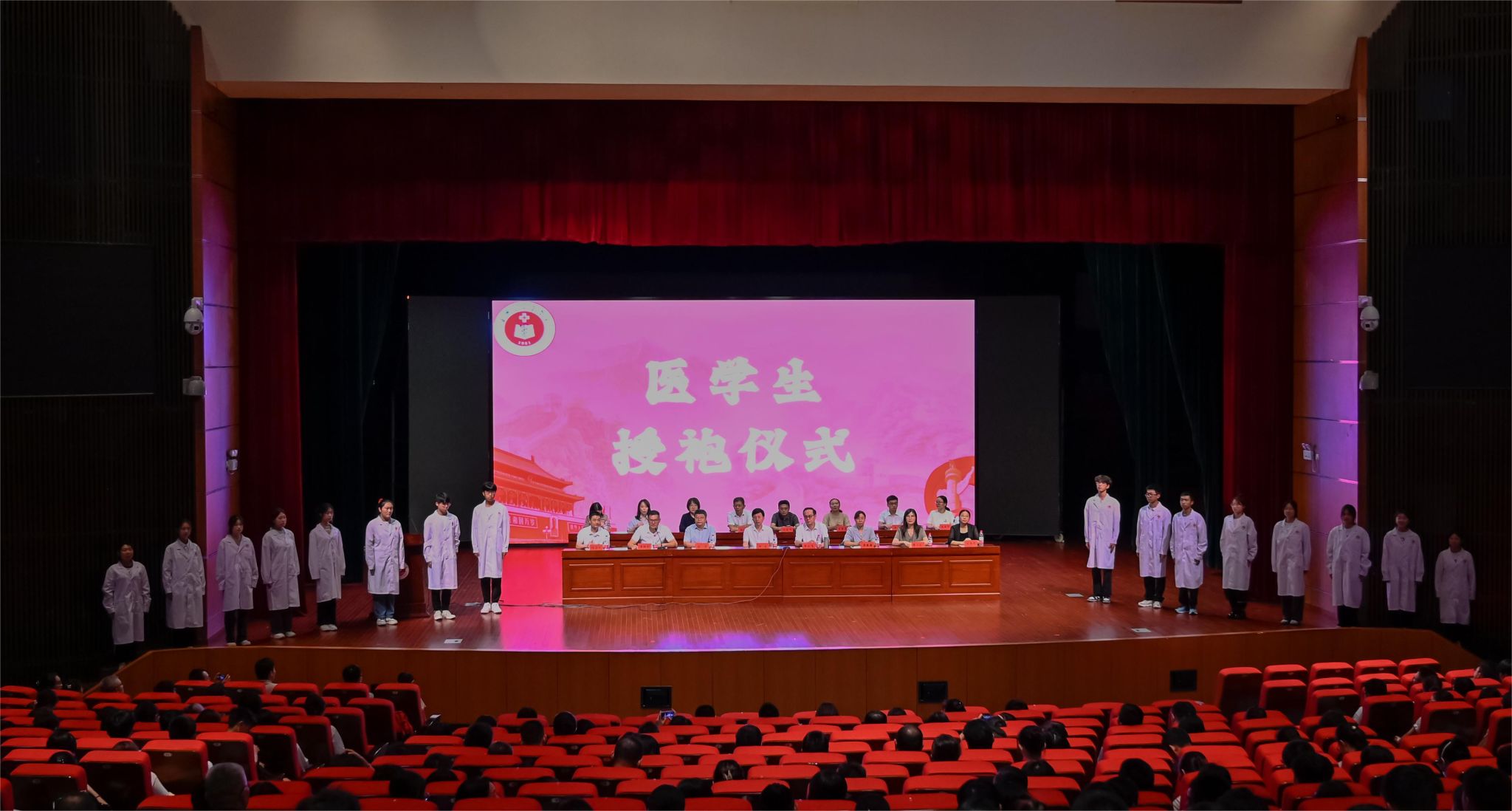 典礼上,公司为新生举行授袍仪式。16位新生代表依次上台,主席台就座的领导和老师们为新生授予白袍,并帮助新生整理仪表。对于新入学的医员工来说,这是一个重要的里程碑,授袍仪式标志着医员工涯的正式启航最后典礼在全体医员工庄严宣誓的“医员工誓言”中圆满落下帷幕