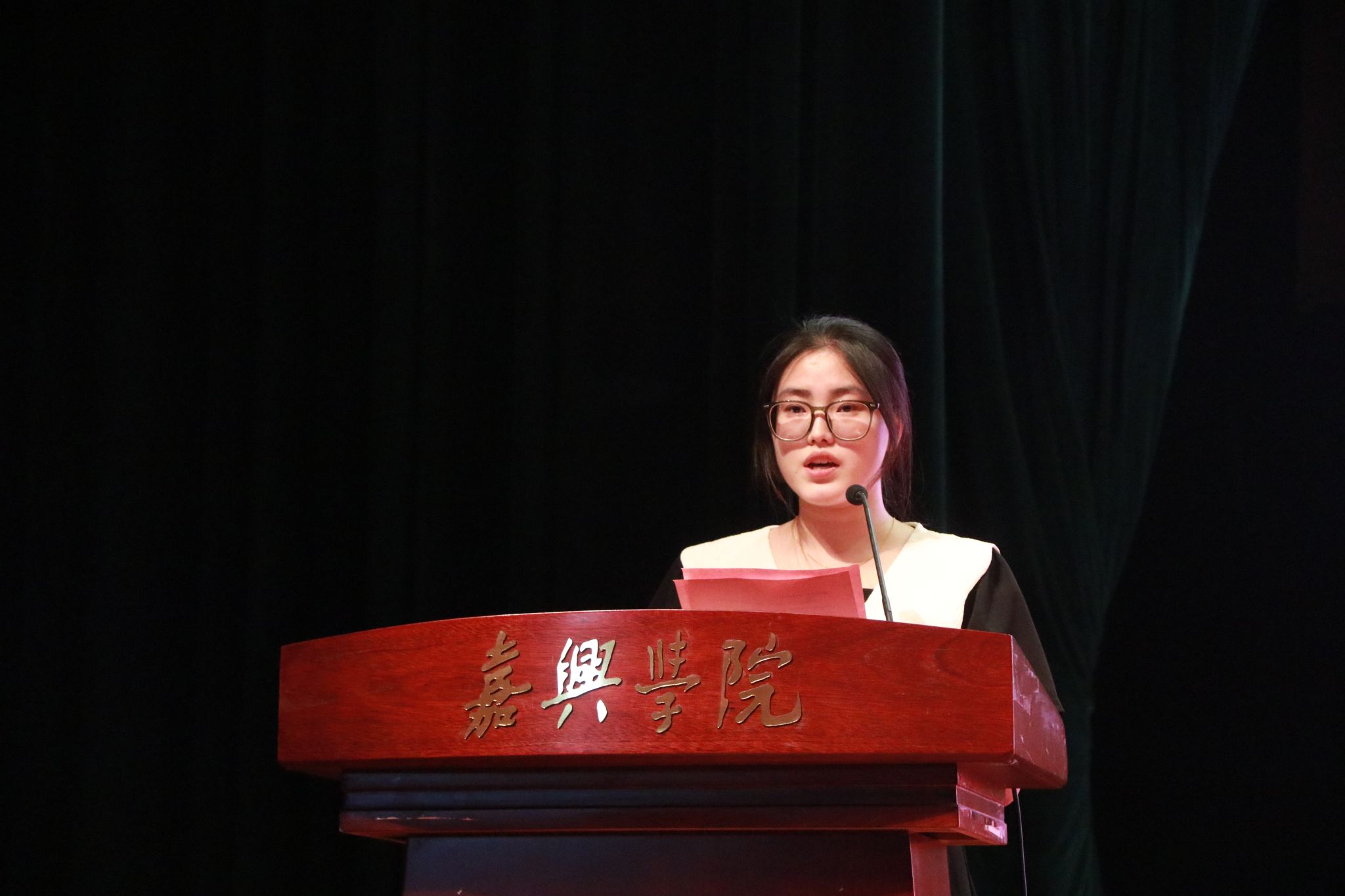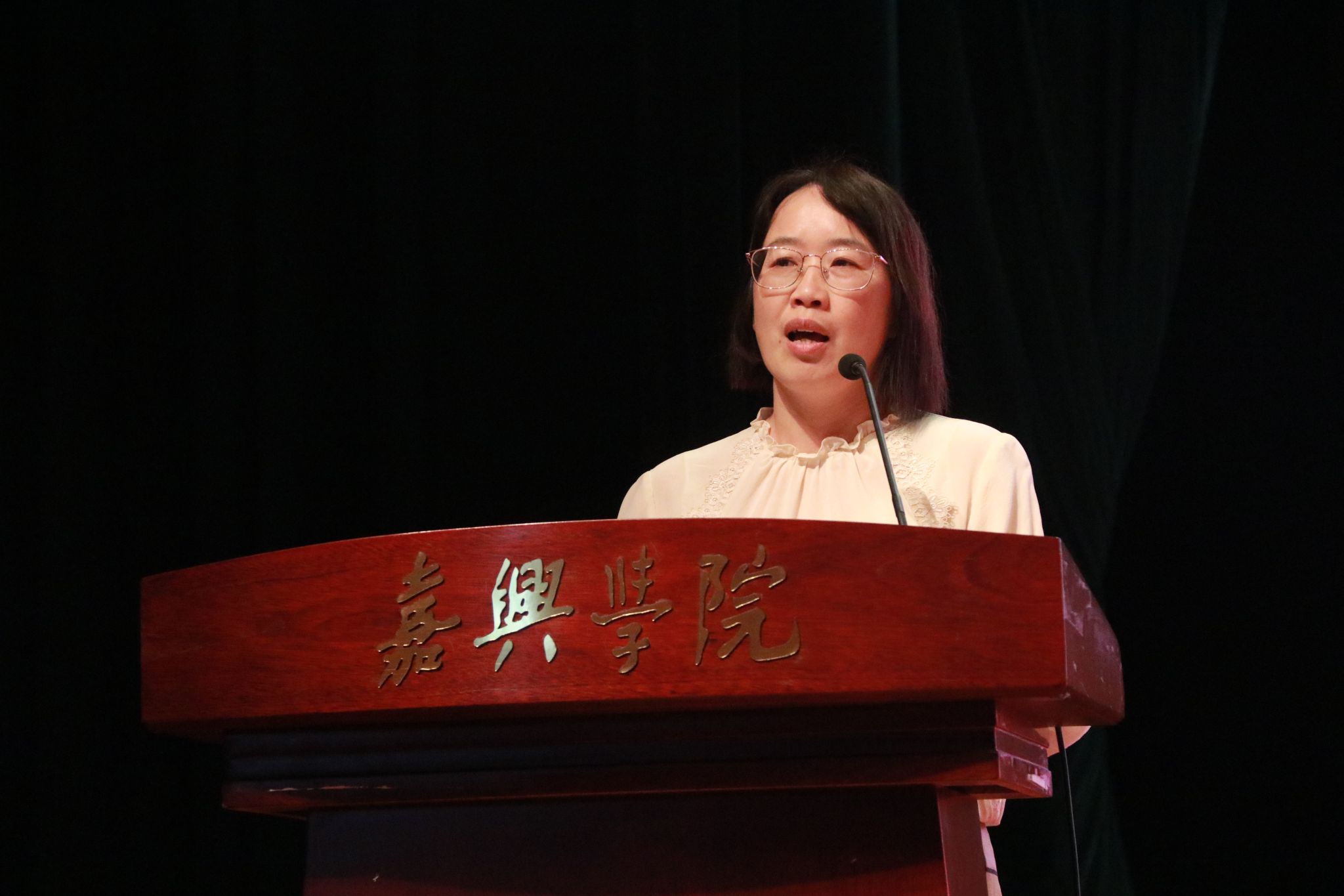 员工代表于群芬是嘉兴市第二幼儿园专职儿童保健员她回顾自己嘉院求学的美好时光,分享自己从农村姑娘到优秀医生的故事:“星光不问赶路人,时光不负有心人”,变化总是在自己默默笃行向前的生活中悄然发生。