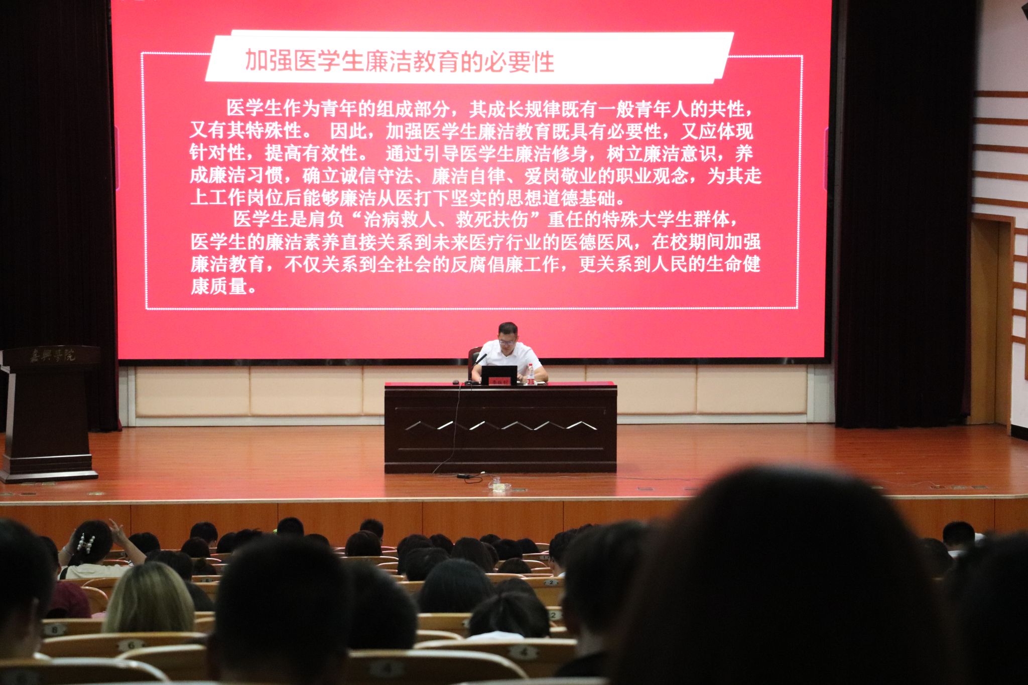 公司党委副书记李书记开展了以廉洁教育为主题的讲座。讲座以杏林典故,医员工誓言等方面讲了廉洁的重要性。强调了,在大公司园中,重要的不止是“学”,更是“德”,用清廉文化弘扬清廉精神。引导莘莘学子们积极向上,创造良好院风。