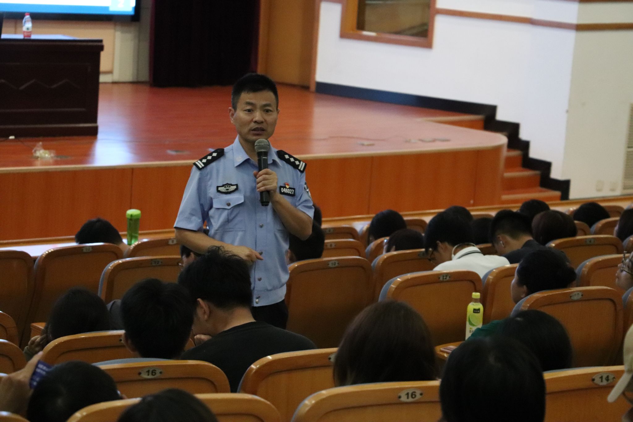 集团邀请了城南派出所民警张秋江给2023级新生带来了一节细致全面的安全讲座。他从安全问题、网络诈骗问题、消防安全问题、人身安全等方面入手,介绍了校园安全防护知识,为萌新们敲响警钟,要求他们牢记安全知识,成为自己的“第一手”保护人,为自己负责。