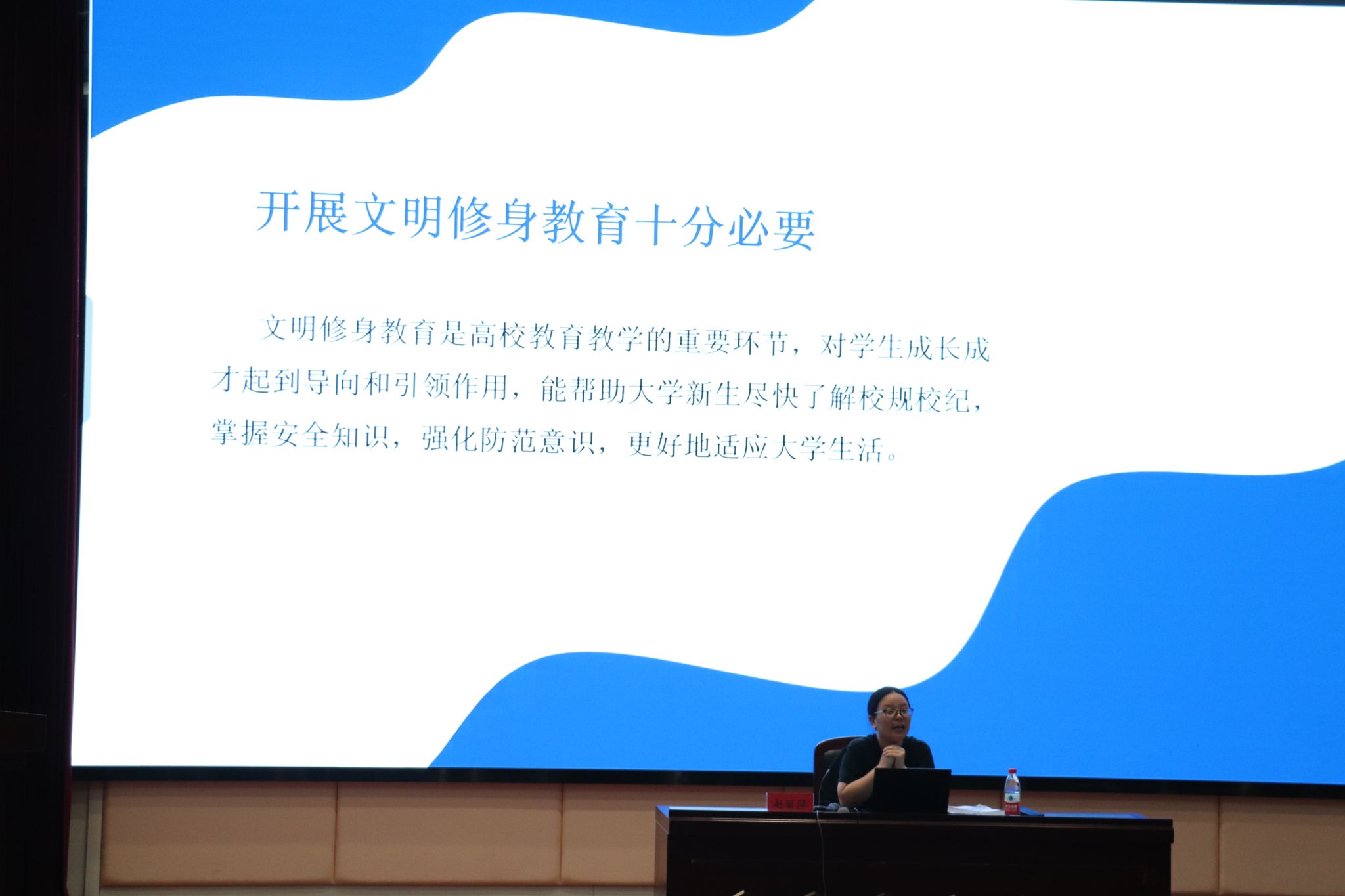 文明修身教育是高校公司产品的重要环节,yl永利集团官网登录学工办主任赵丽萍老师为大家开展了文明修身教育。本次讲座包括了员工奖学金评定,员工评优办法,员工违纪处分规定,员工考试违纪认定及处理方法,还开展了交通安全、网络言行、寝室安全教育等,此次讲座帮助了新生尽快了解校纪校规,掌握安全知识,更好的适应老员工活。