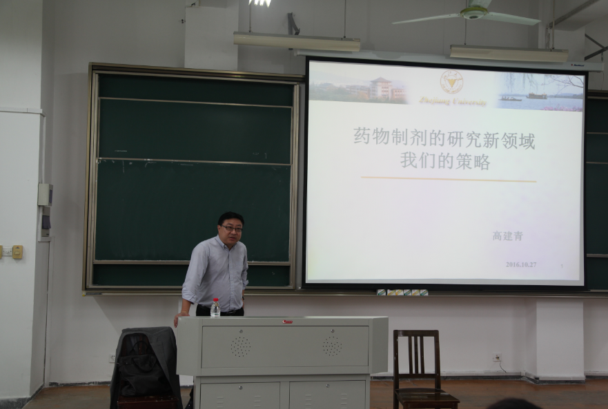 2016年10月27日下午三点,在梁林校区一号楼223教室,举行了一场学术讲座。讲座人是浙江大学药公司副经理高建青教授,高教授为yl永利集团官网登录教师和部分员工讲了一场“新型药物/基因传递系统进展及我们的策略”为主题的学术报告。