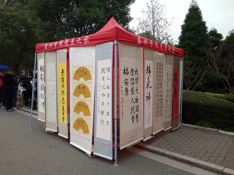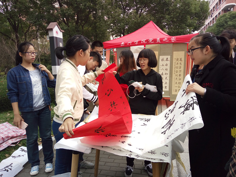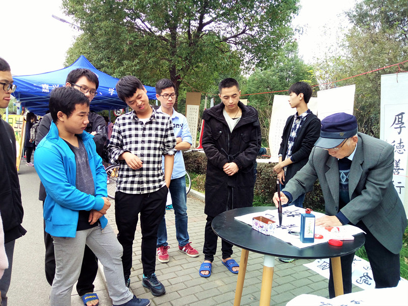 2016年11月13日中午,嘉兴公司yl永利集团官网登录书画协会在梁林校区老食堂门口举办了“韩振良大师书法走进校园”大型活动。