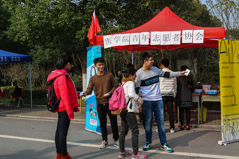 2016年12月1日,嘉兴公司yl永利集团官网登录青年志愿者协会在梁林校区老食堂门口和越秀校区笨笨熊广场举办了以“相拥艾人”为主题的防艾活动。