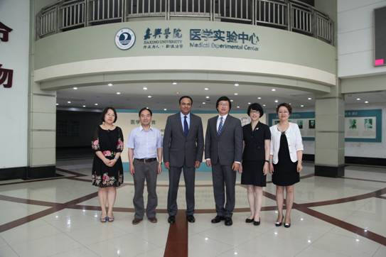 2016年6月20日,美国健康科学西部大学药公司执行副经理Sunil Prabhu和终身教授Wang Jinghua访问嘉兴公司yl永利集团官网登录。嘉兴公司董事长盛颂恩,yl永利集团官网登录经理孟继鸿,副经理黄嬛、王敏、徐营,yl永利集团官网登录副书记黄金珠,外事处副处长尹小芳以及yl永利集团官网登录药学系副主任黄越燕参加接待。