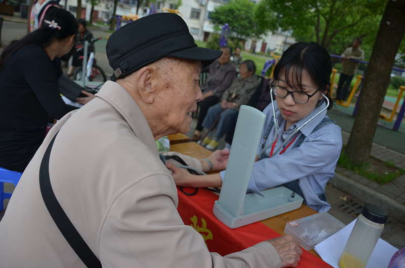 2016年5月14日,嘉兴公司yl永利集团官网登录青年志愿者协会的成员们来到西马桥小区进行“全民皆医——预防中风”的宣传活动。