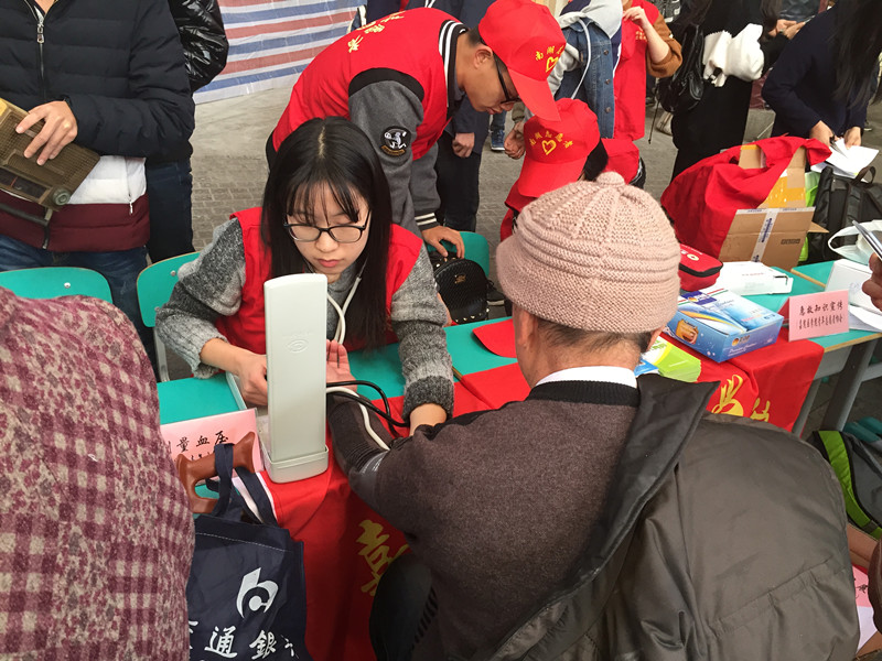 在校内活动中,志愿者们兴致勃勃,准时来到活动现场。为体现yl永利集团官网登录的特色,他们结合自身的专业,为大家量血压,还做了急救知识和防艾知识的宣传,受到了同学们的一致好评,活动现场十分气氛热烈。在校外活动中,志愿者们更是热情高涨。他们在城南花园、华庭街中心广场和府南花园都积极开展了量血压,老人们相关健康知识的宣讲等活动。贴心的关怀和良好的态度让志愿者们赢得了人们的信任,他们离开时那些真挚的道谢也让我们感到无比满足。