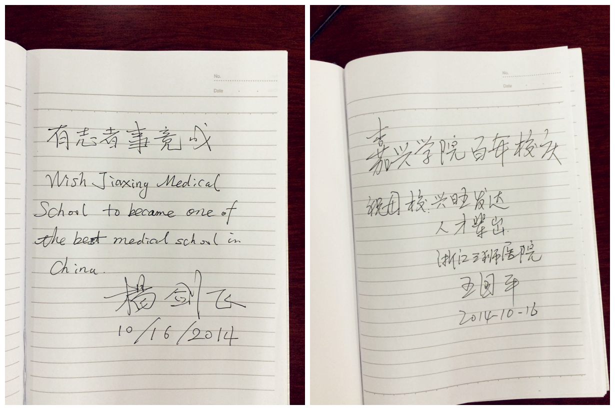 在座谈会的尾声,杨博士、王经理为嘉院百年校庆题字,送上自己对母校美好的祝愿,愿母校兴旺发达,人才辈出!