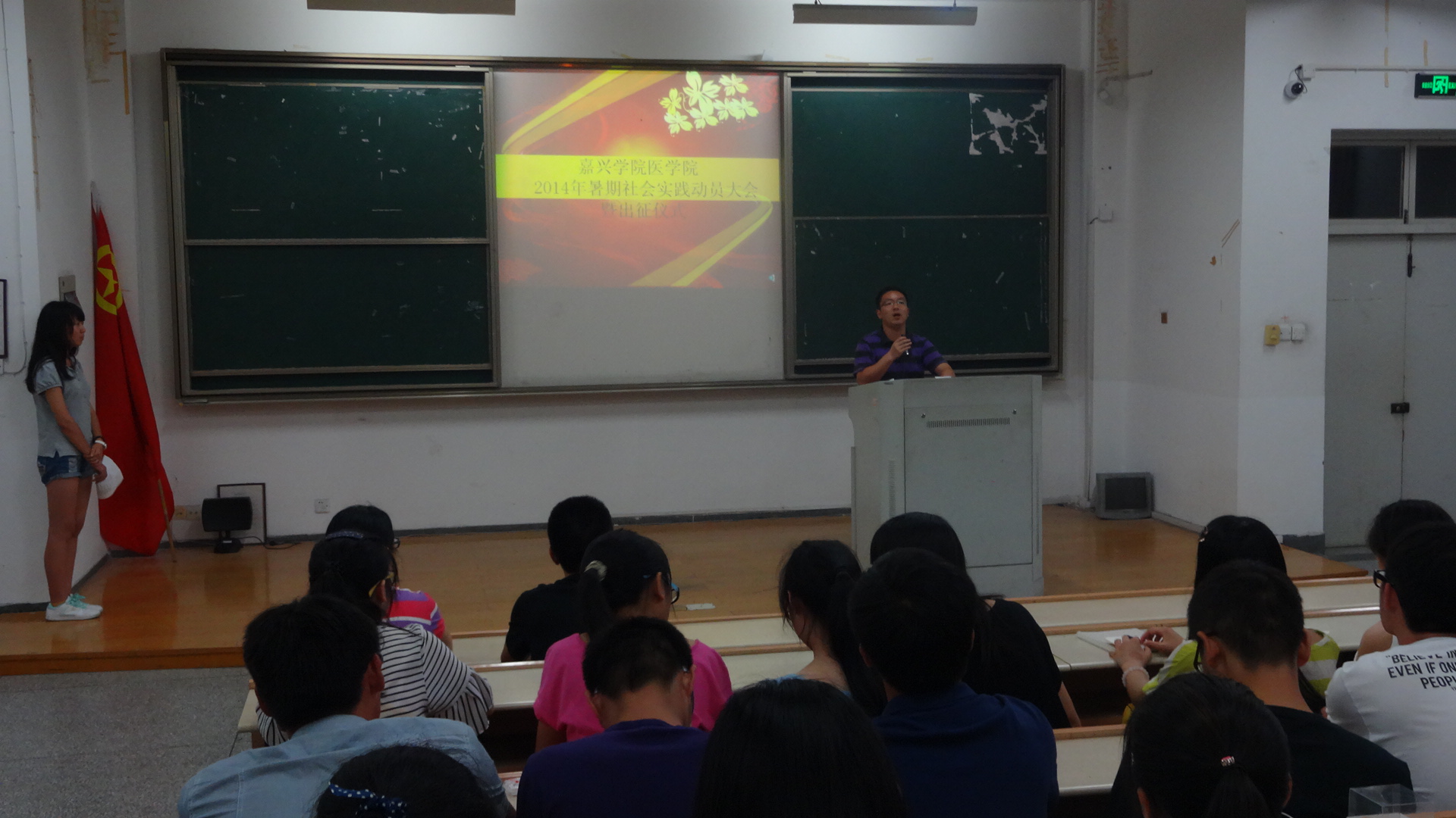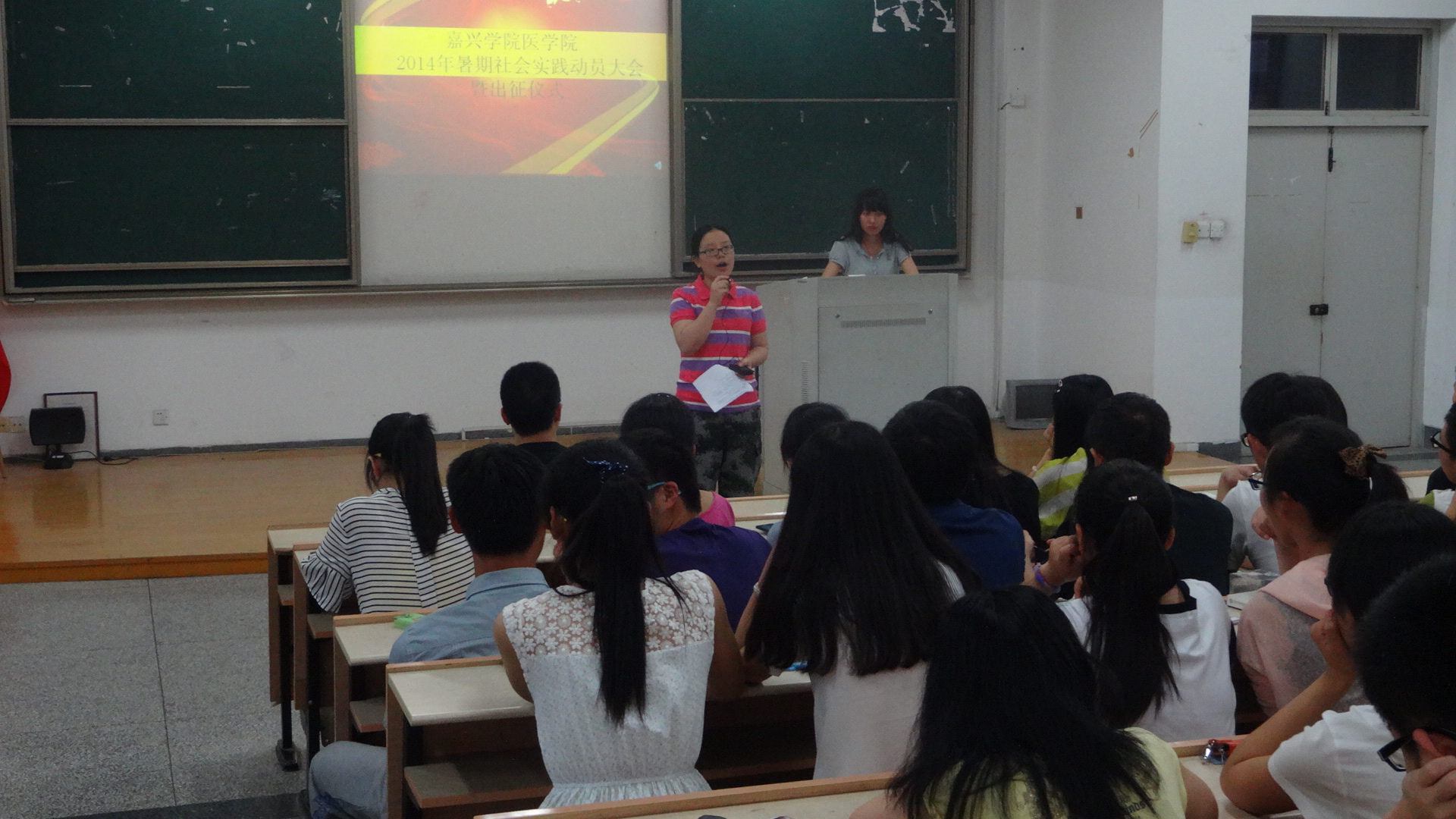 7月3日晚19:00,嘉兴公司yl永利集团官网登录2014年暑期社会实践动员大会暨出征仪式在梁林校区1号楼221教室开幕。公司党委副书记黄金珠老师,团委书记赵丽萍老师出席,暑期社会实践团队全体队员参加本次大会。