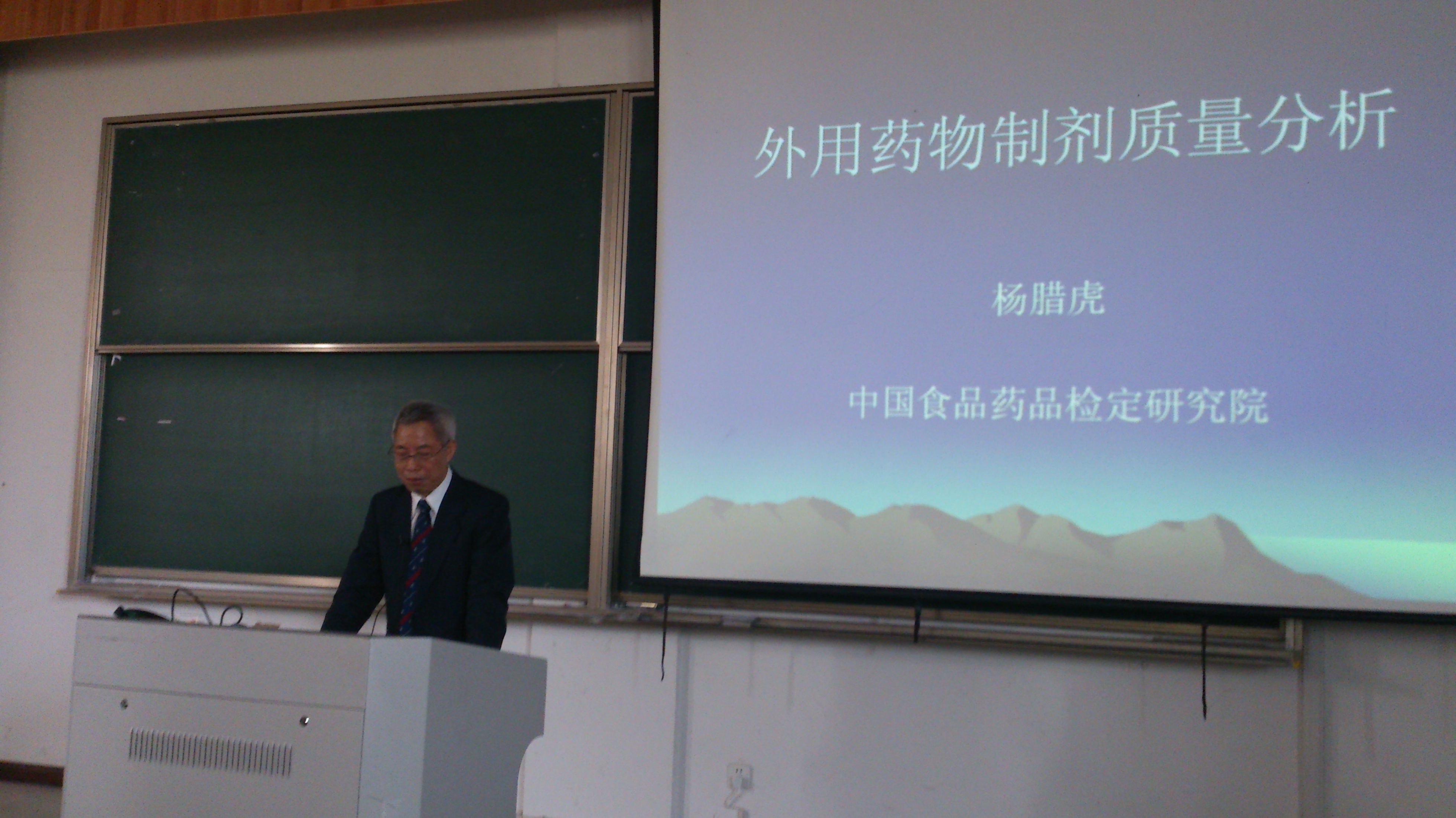 2014年3月17日在7号楼报告厅,药学系特邀中国食品药品检定研究院主任药师、复旦大学药公司、西北大学兼职教授杨腊虎主任,为药学专业员工举行了专题讲座。药学11级、12级全体员工、药学系全体教师和实验教师、及其它系部部分教师参加了本次活动。
