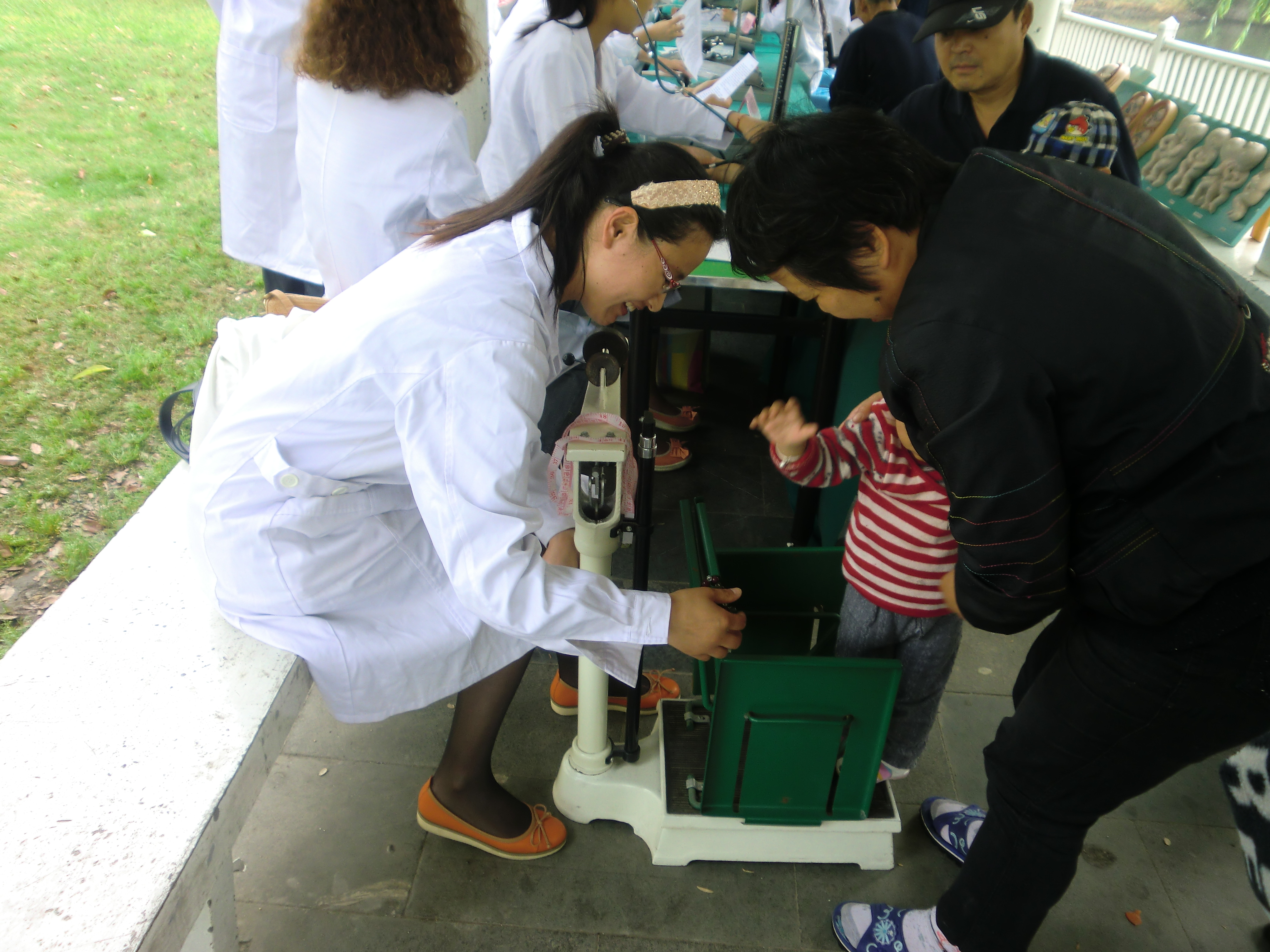 活动以一名教师党员和一名员工党员相互搭档的形式开展,教师们根据自己的专长分别开设了妇产科、儿科、内外科、皮肤科、心理咨询等相关健康疾病咨询,同学们在从旁协助并观摩学习。如凌厉老师为老人们指导夏季高血压的用药、饮食等内科问题,张梅光老师通过模型为社区居民展示了胎儿的生长与发育,谢晓云老师为社区的儿童用专门的儿童磅秤称体重、量身高等,朱明亚老师示范“家庭急救”的技能步骤等。