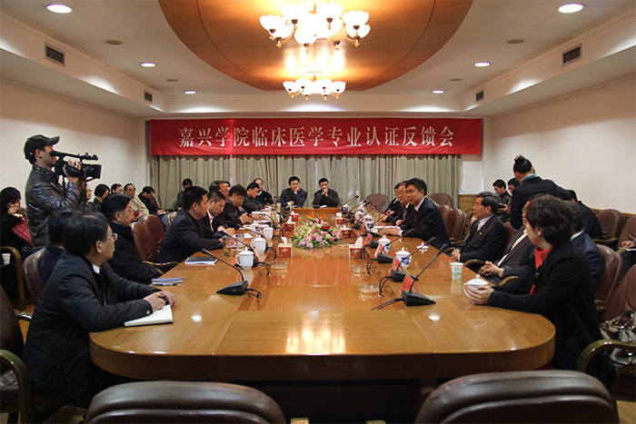 11月29日下午,教育部临床医学专业认证专家组结束了对嘉兴公司的认证现场考察工作,在公司三楼会议室举行了认证反馈会。出席反馈会的有教育部临床医学专业认证专家组组长、教育部医学教育认证委员会秘书长、北京大学程伯基教授,副组长、哈尔滨医科大学曹德品教授,专家组成员、吉林大学迟宝荣教授、华中科技大学洪光祥教授、上海交通大学姜叙诚教授、北京大学王维民教授、中国医科大学于晓松教授、山东大学孙靖中教授、天津医科大学刘佩梅教授及专家组秘书、北京大学谢阿娜老师。参加会议的还有董事长徐宪民、公司领导班子成员、相关职能部门负责人、公司领导、教研室负责人、各附属医院领导和医教科长、教学工作委员会和督导委员会成员、员工代表。反馈会由专家组副组长、哈尔滨医科大学曹德品教授主持。