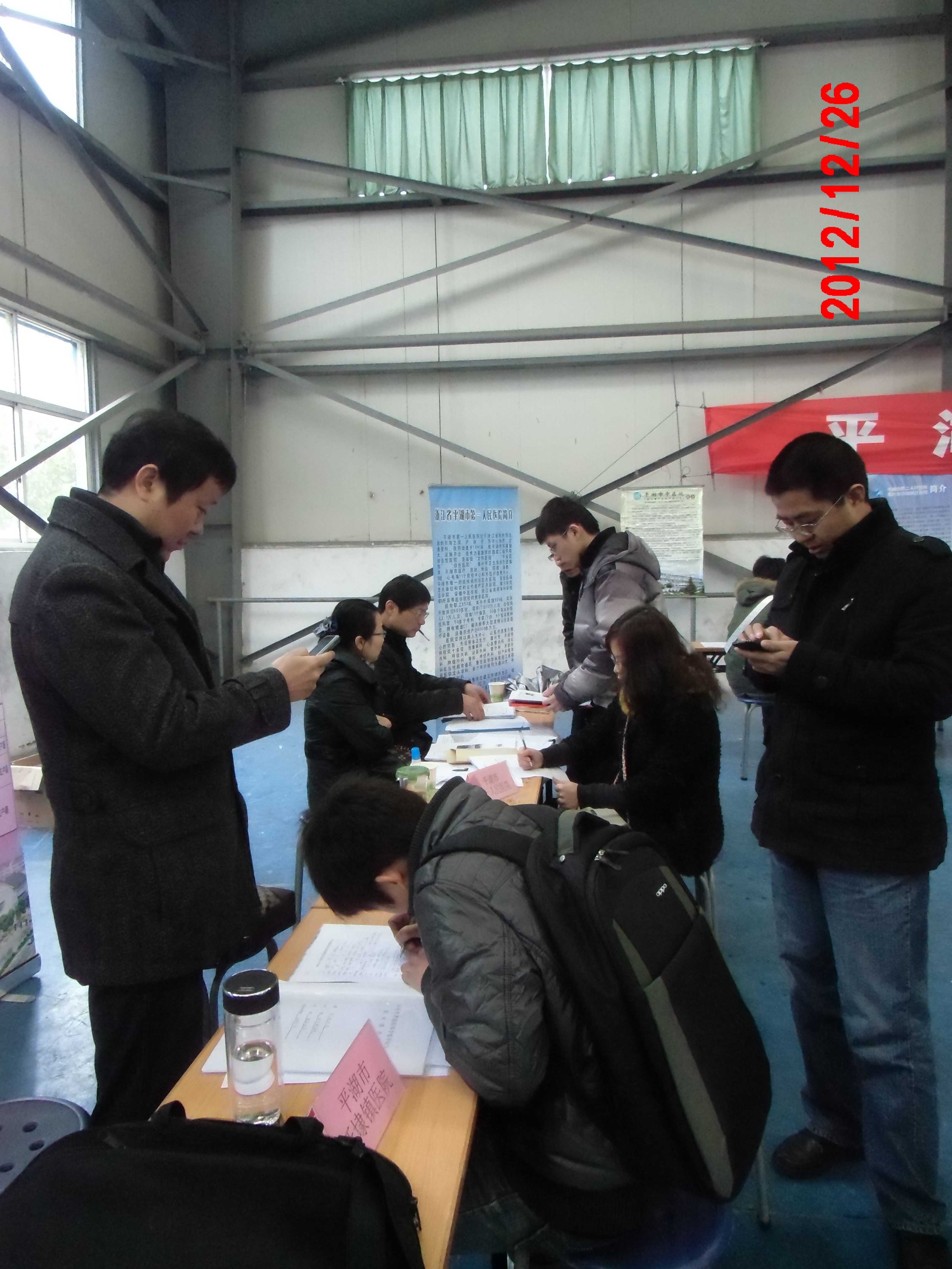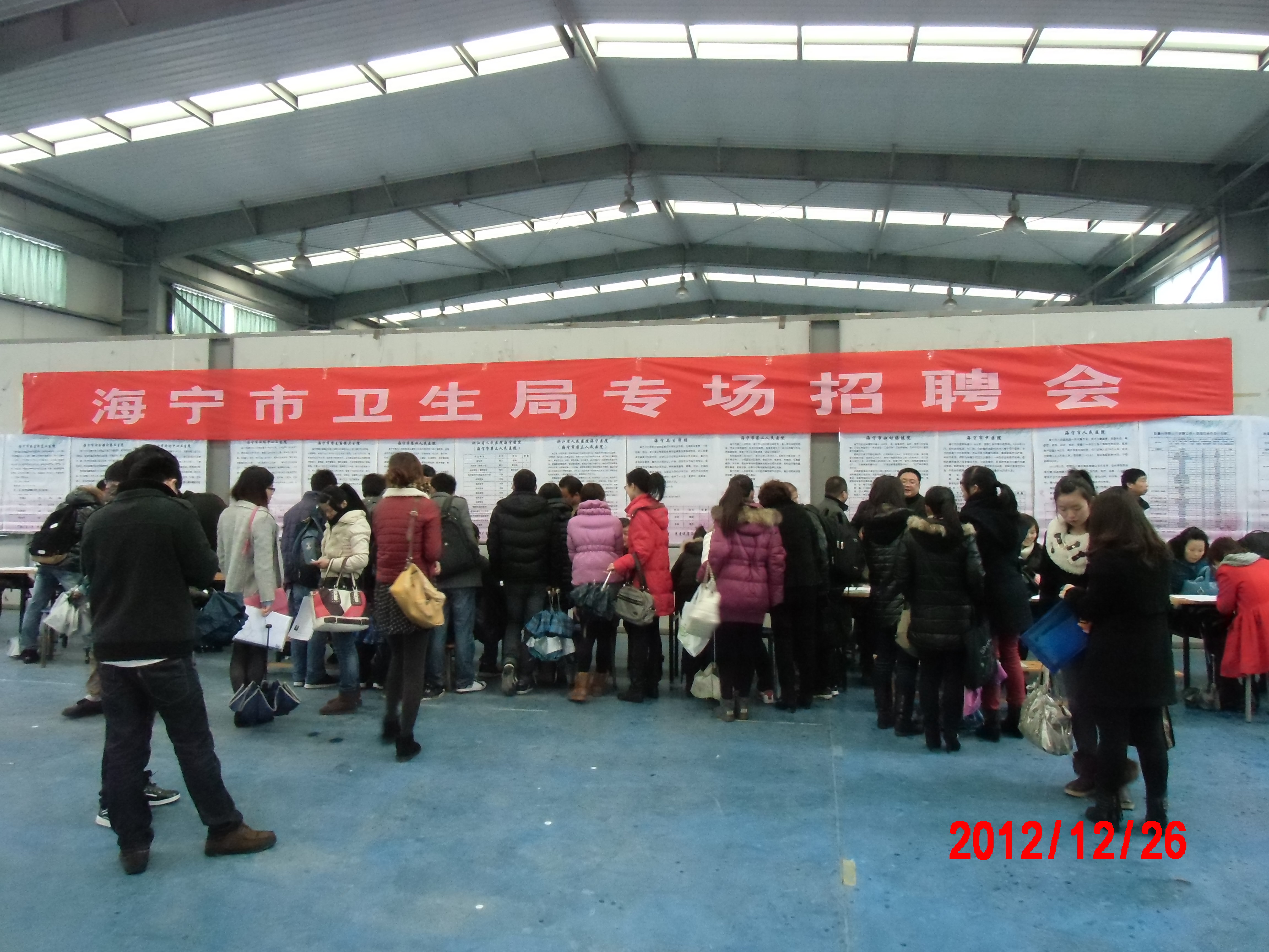 在公司、公司领导的高度重视和大力支持下,2012年12月26日,yl永利集团官网登录在梁林校区风雨操场成功举办了“2013年海宁、平湖卫生局专场招聘会”。这是公司第6次与海宁市卫生局、人事局合作,首次与平湖市卫生局、人事局合作举办招聘会。海宁卫生局共有人民医院、中医院、周王庙镇卫生院等13家用人单位,提供岗位111个;平湖卫生局共有人民医院、中医院、新埭镇医院等15家用人单位,提供岗位131个。参加本次招聘会人数约100余人。