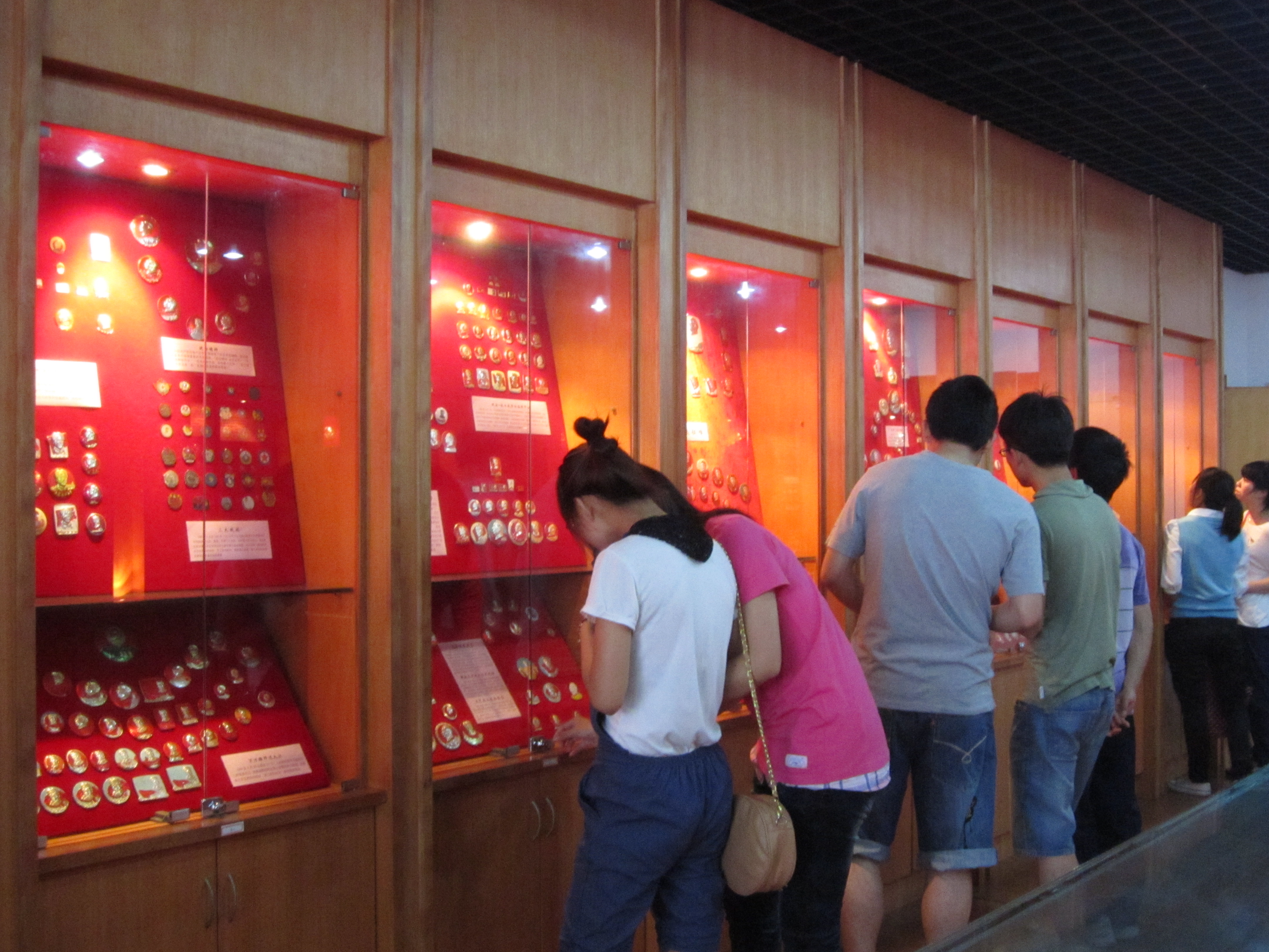 《嘉兴档案史志》的主编李持真老师热情接待了同学们,并亲自担任起讲解员,为同学们做详细介绍。首先参观了“毛泽东像章展”,展厅里陈列了各个时期制作的毛泽东像章2600余枚,不仅表达了人们对领袖的爱戴与崇敬,同时也记录了中国共产党领导革命所发生的重大历史事件。通过观看展览,同学们不仅领略了一代伟人的风采,同时也接受了革命传统教育。