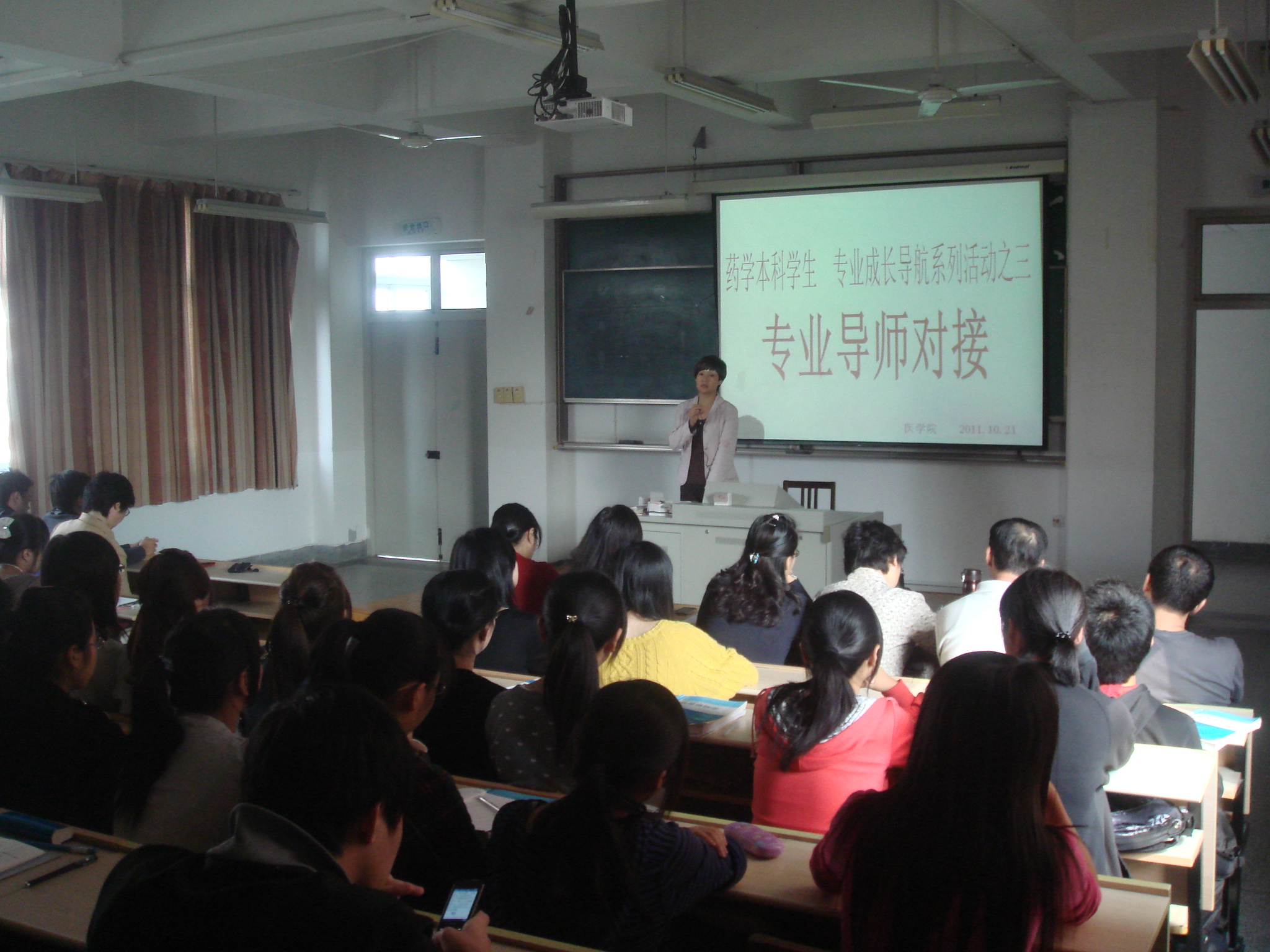2011年10月21日下午,yl永利集团官网登录2010级药学专业本科生导师对接会在梁林校区1号楼324隆重举行。本次对接会由公司党总支副书记谢宏老师主持,2010级药物研究所的11名专业导师及药学专业全体员工出席了本次会议。