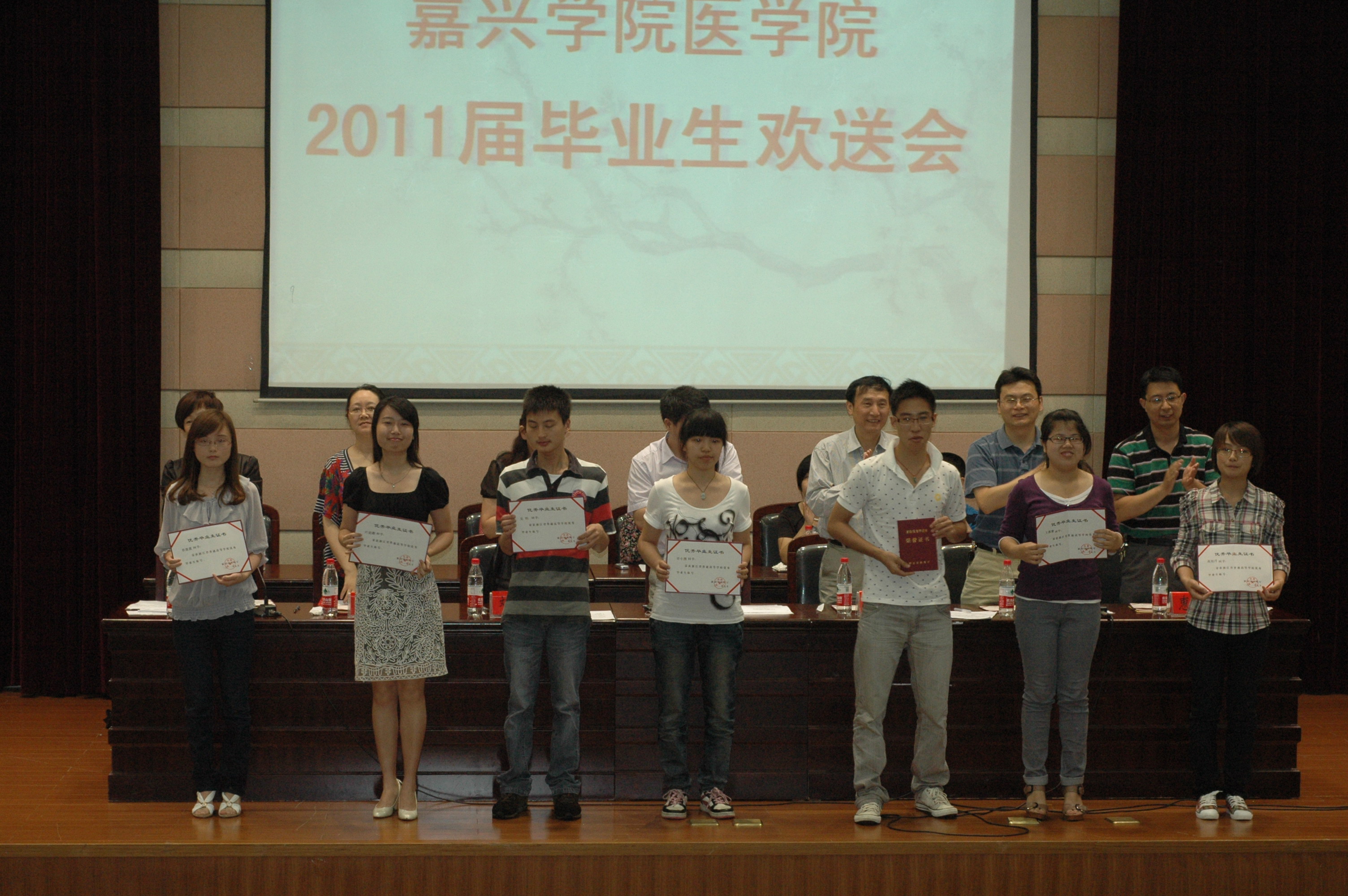 欢送会上,公司通报了“陈省身奖”获奖名单,同时表彰(省级、校级和院级)优秀毕业生、优秀实习生、2011年浙江省老员工医学竞赛获奖员工、考取研究生和公务员员工、就业先进班集体。毕业生向公司赠送了纪念品。