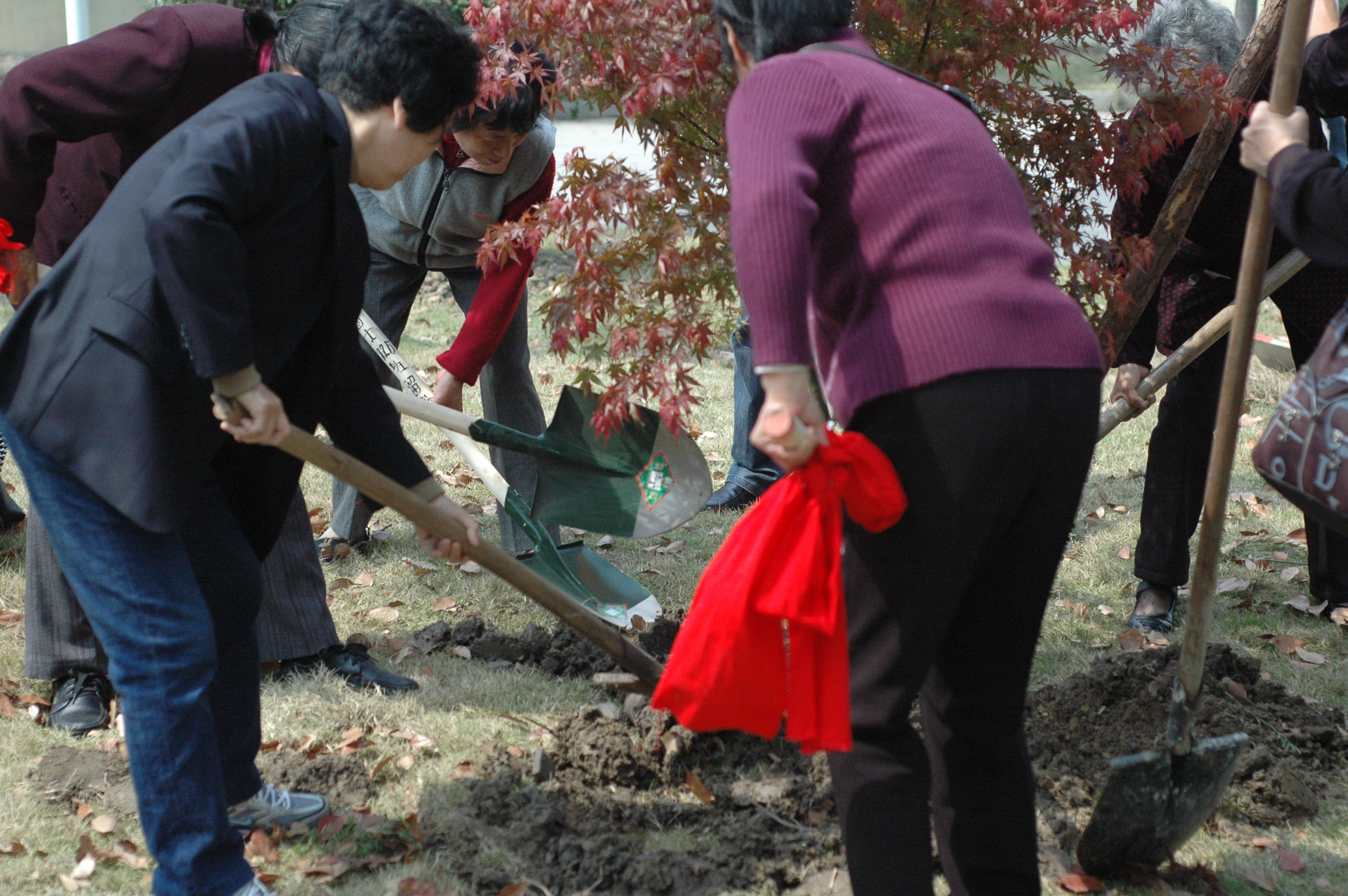 座谈会后,员工们将两棵红枫赠予母校,希望母校事业红红火火。