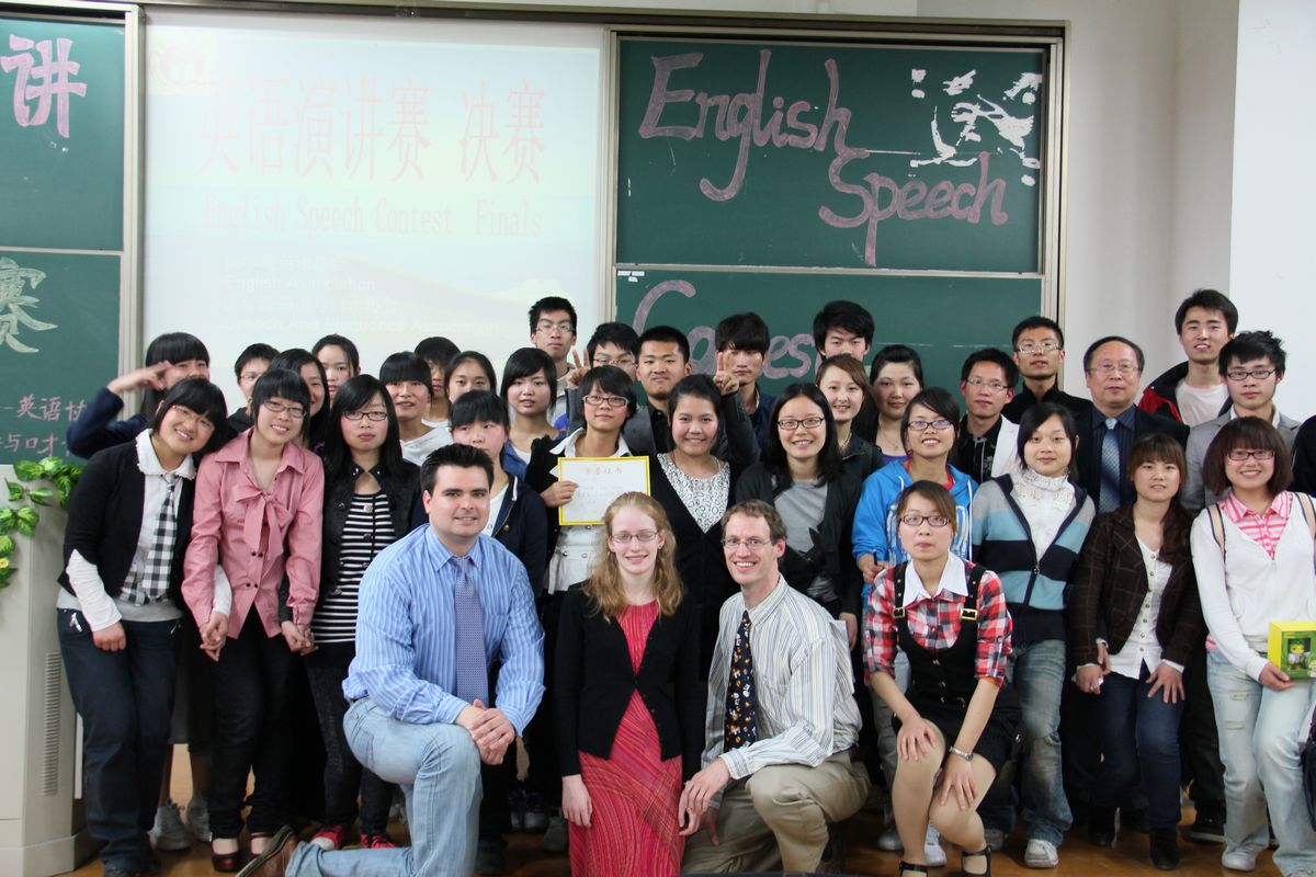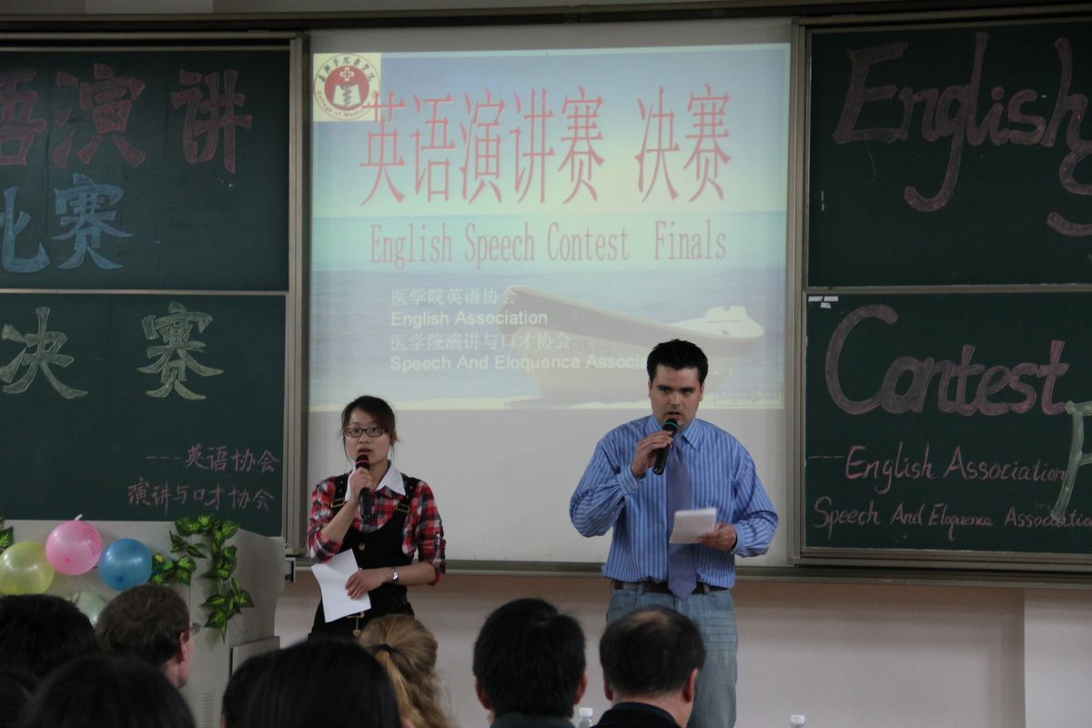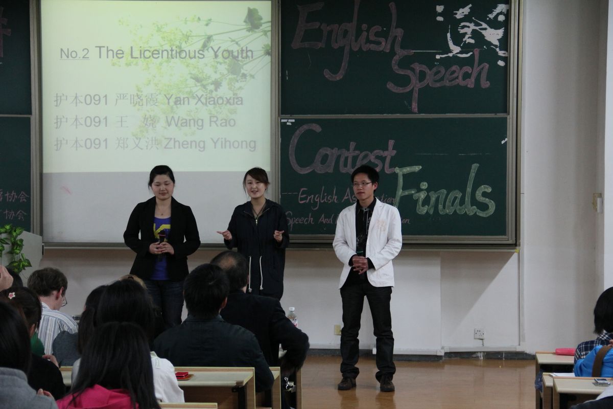 2011年4月24日晚,yl永利集团官网登录在梁林一号楼322成功举办了英语演讲比赛,本次活动由yl永利集团官网登录团总支主办,英语协会和演讲与口才协会共同承办,共有八个小组入围。特邀外教John和chantal,以及宋国杰教授、学工办主任蒋小红、团总支书记赵丽萍、江欢老师担任评委,员工叶贝贝、陈景锋、陈飞担任嘉宾,外教Phillip和蒋晓贇同学担任主持人。