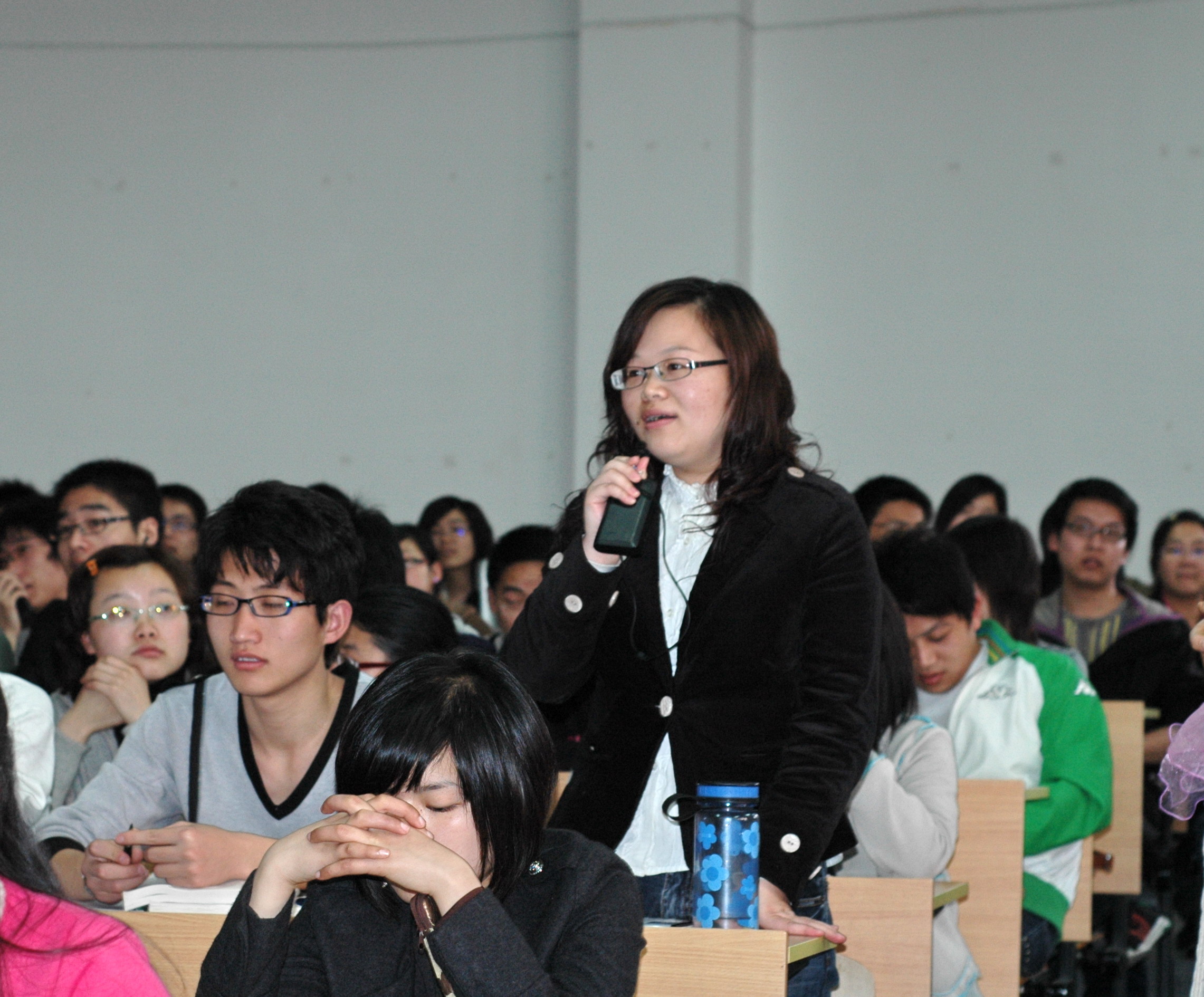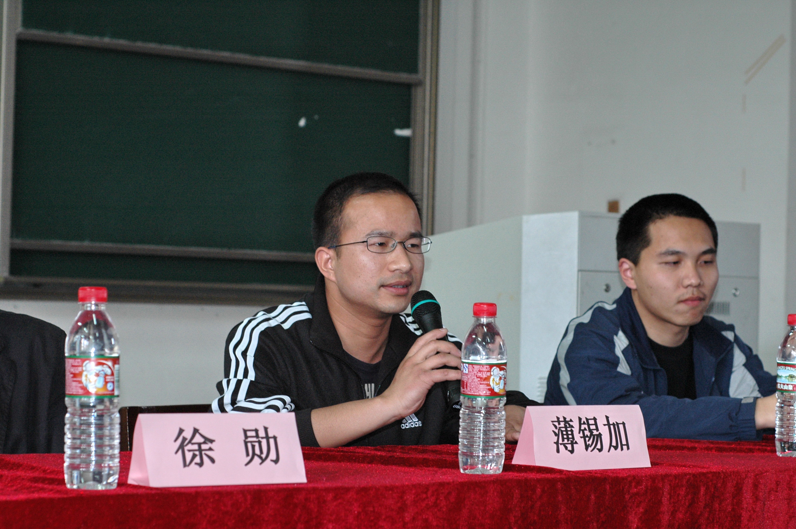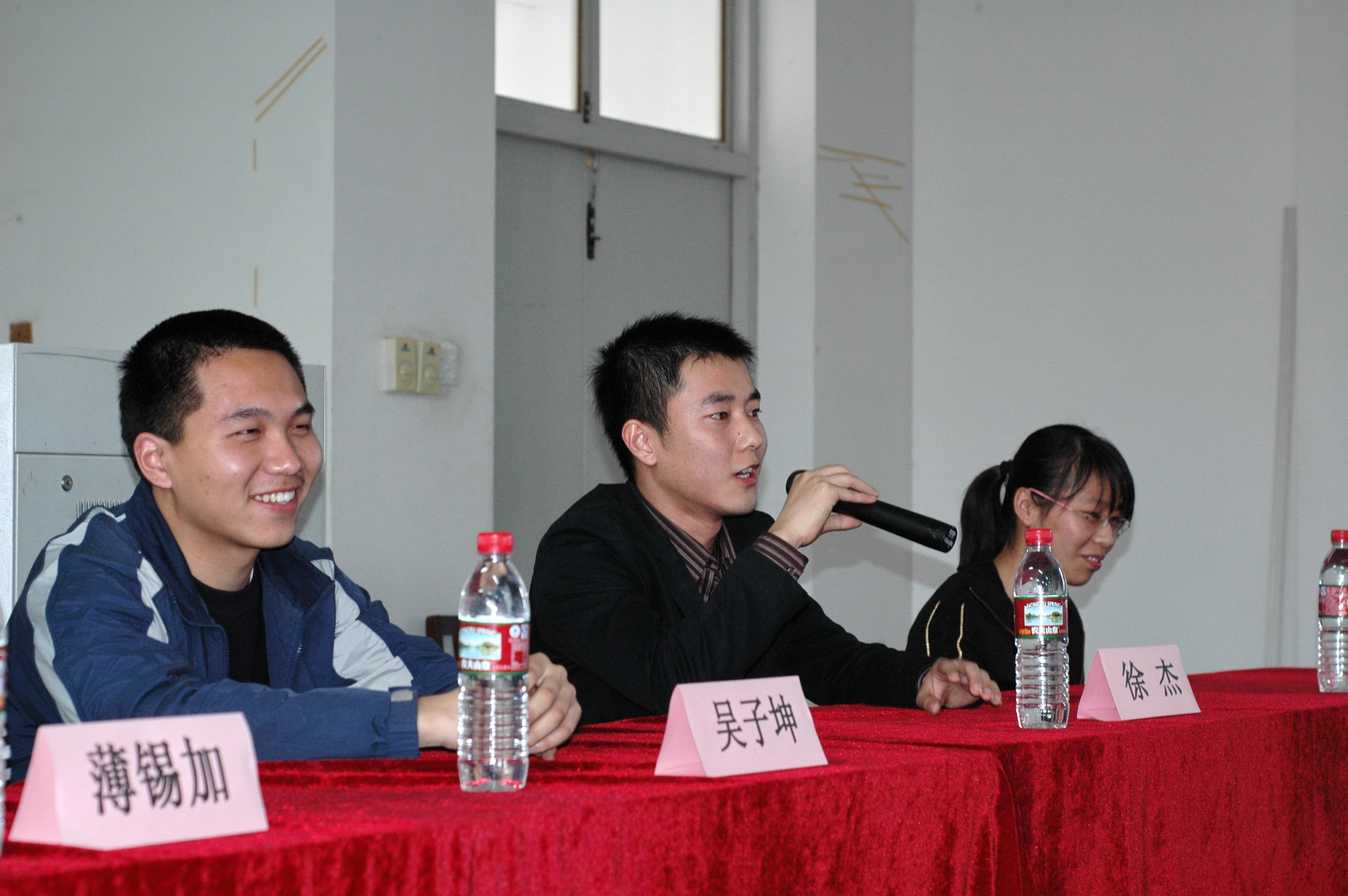 在交流会上,各位员工简单的自我介绍之后,便由05级的同学向他们发起提问,大家都踊跃发言,“请问王晓凑学长,你是如何处理考研、找工作和实习这三者的关系的?”,“请问吴子坤学长,你在考公务员的过程中是如何准备的?”,“请问一下我们资格最老的薄锡加学长,能与我们分享一下你在四川的经历吗?”大家频频发问,将交流会的气氛掀向了高潮。