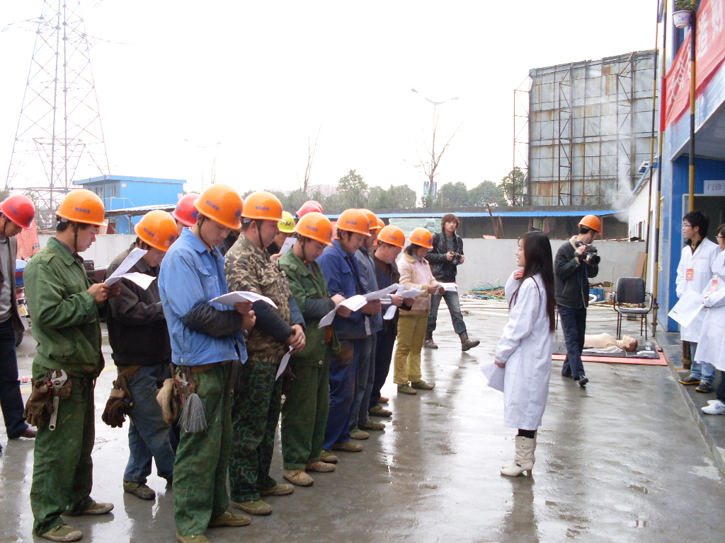 公司青年志愿者主要针对基建民工的实际情况,开展了基本医疗检查,如做心电图,测量血压与脉搏,测量视力、色觉等;同时通过现场人体模型为他们演示心肺复苏、人工呼吸等急救措施;另外就现场组织了相关医疗知识的学习,发放工地常见紧急情况的急救资料(如高压触电、高空坠落等急救护理)。此次医疗活动服务人数达70余人,共发放宣传资料近200份。