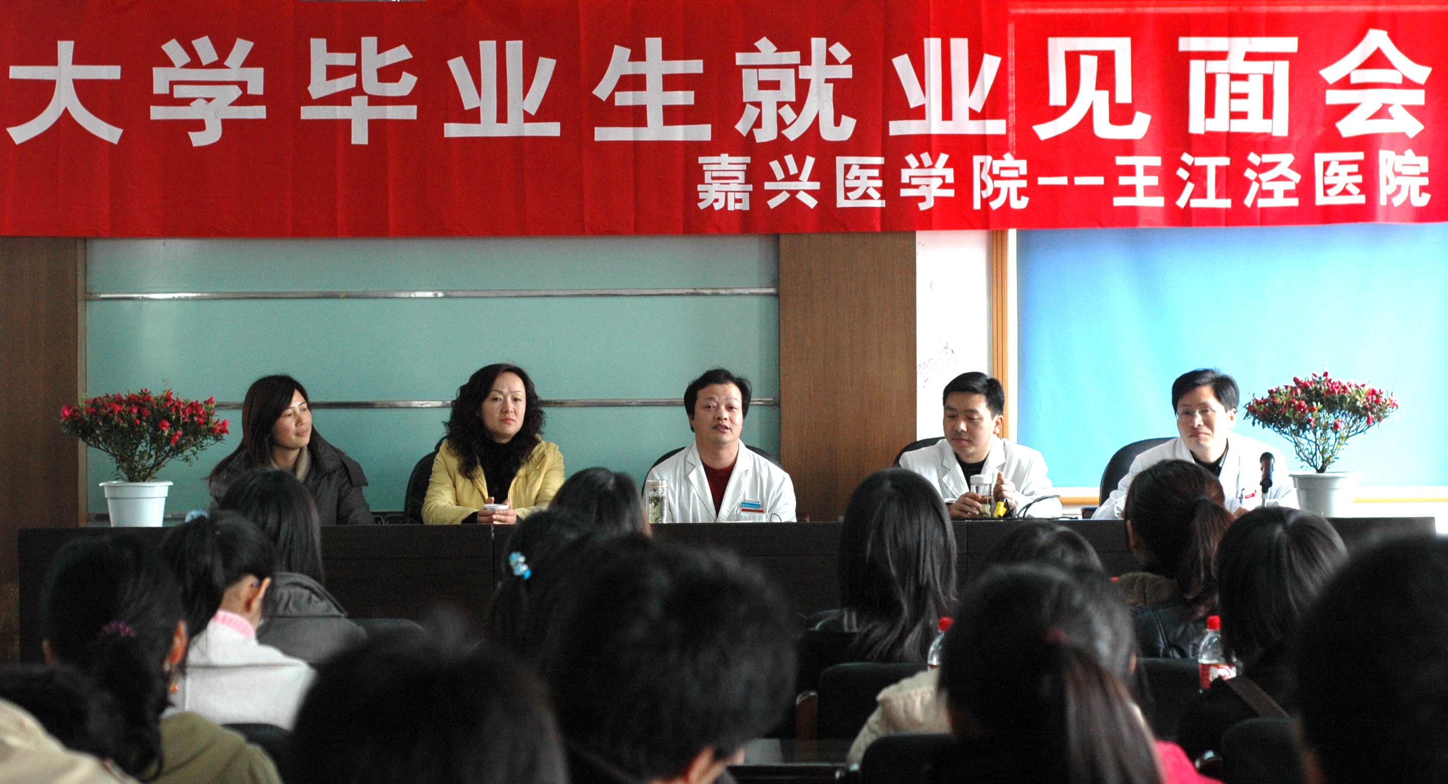 3月8日下午,yl永利集团官网登录联合王江泾医院在嘉兴秀洲区王江泾举办大学毕业生就业见面会,公司党总支谢宏副书记、学工办蒋小红主任、学工办老师及04级、05级临床医学专业51名员工参加了此次活动。王江泾医公司党政领导对此次活动高度重视并对参加见面会的老师和同学表示热烈的欢迎。