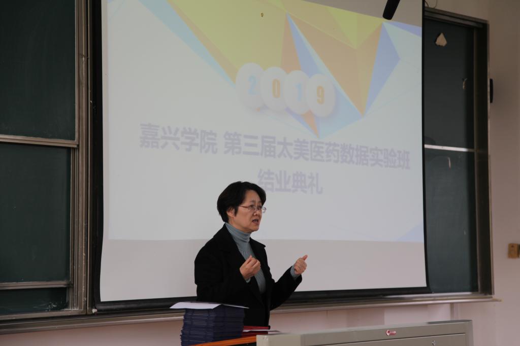 黄嬛常务副经理向太美奖学金获得者颁发了荣誉证书,并作大会讲话。她对太美医疗科技连续4年与yl永利集团官网登录开展校企合作办学表示感谢,她表示,太美医药数据实验班已成为yl永利集团官网登录药学专业的特色办学项目,公司希望进一步加深与太美医疗科技的校企合作,助推应用型医药人才培养。