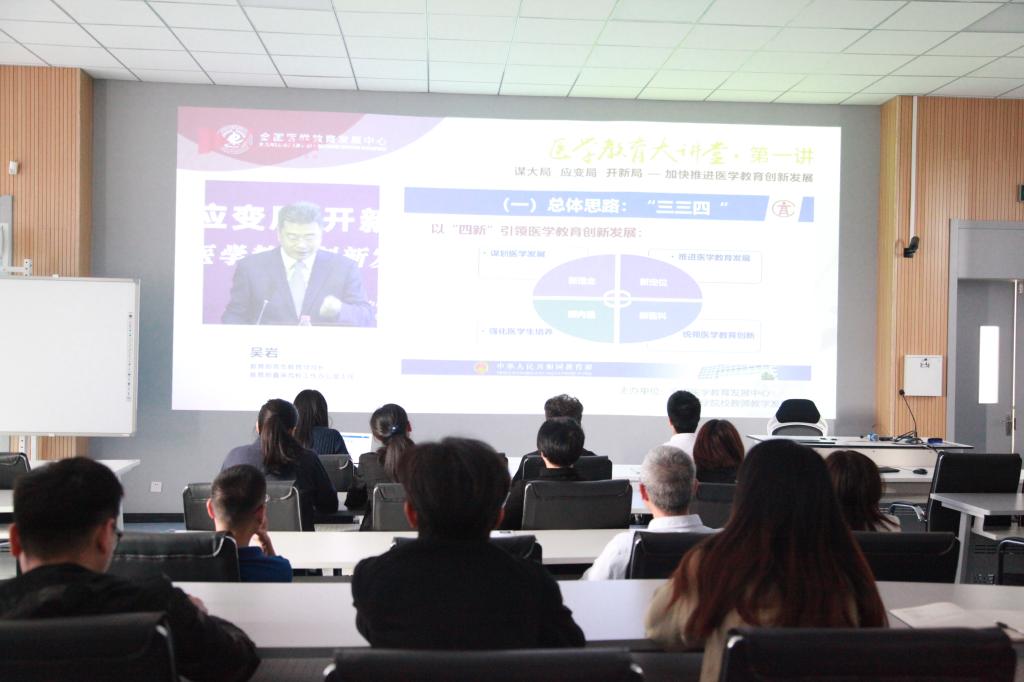 10月14日上午,由全国医学教育发展中心、全国yl永利集团官网登录校教师教学发展联盟主办的“医学教育大讲堂”第一讲开讲。教育部高教司司长吴岩作了题为“谋大局、应变局、开新局”全面推进医学教育创新发展的主旨报告。作为联盟成员单位,公司教师发展中心、yl永利集团官网登录组织全体教师在梁林1号楼323智慧教室集中观看了讲堂。
