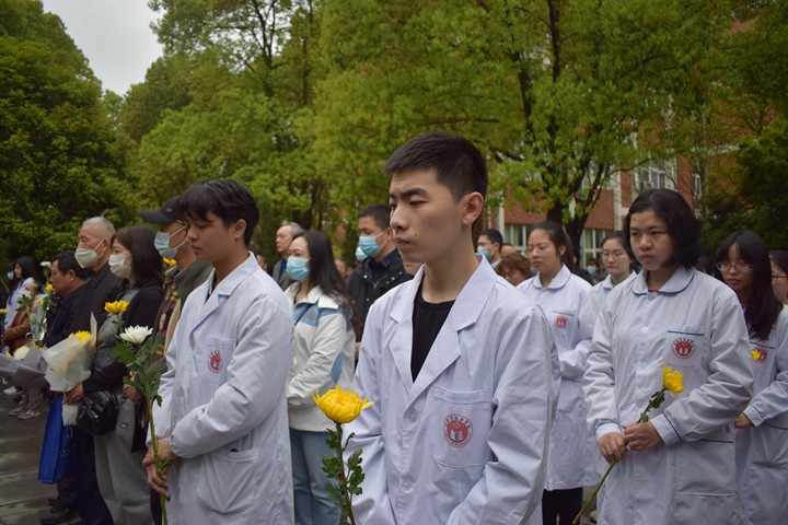 4月2日上午,由yl永利集团官网登录、嘉兴市红十字会联合举办的“清明至,忆追思”——缅怀“无语良师”活动在梁林校区举行。遗体捐献者家属、嘉兴市红十字会、公司党委书记陈云飞和师生代表共100余人参加活动。