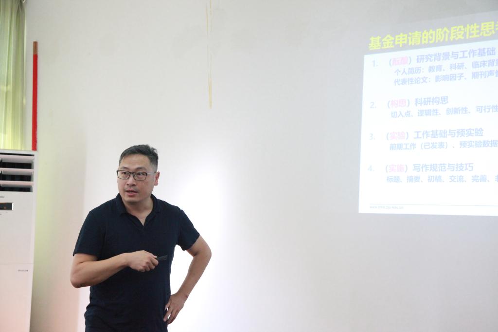 9月30日下午,周以侹教授面向yl永利集团官网登录科研骨干、国基金申报教师、附属医院教师及研究生展开了指导讲座。周以侹教授首先分享了国家基金项目申报和材料撰写方面的经验,并提出许多需要注意的问题和事项。随后,yl永利集团官网登录青年教师高金来博士向大家分享了他申报国家基金的经验和心得,为正在申报和拟申报国家基金项目的教师传授宝贵经验,避免许多弯路,显著提升了相关教师的申报信心,大大提高了yl永利集团官网登录教师申报国家基金项目的积极性。