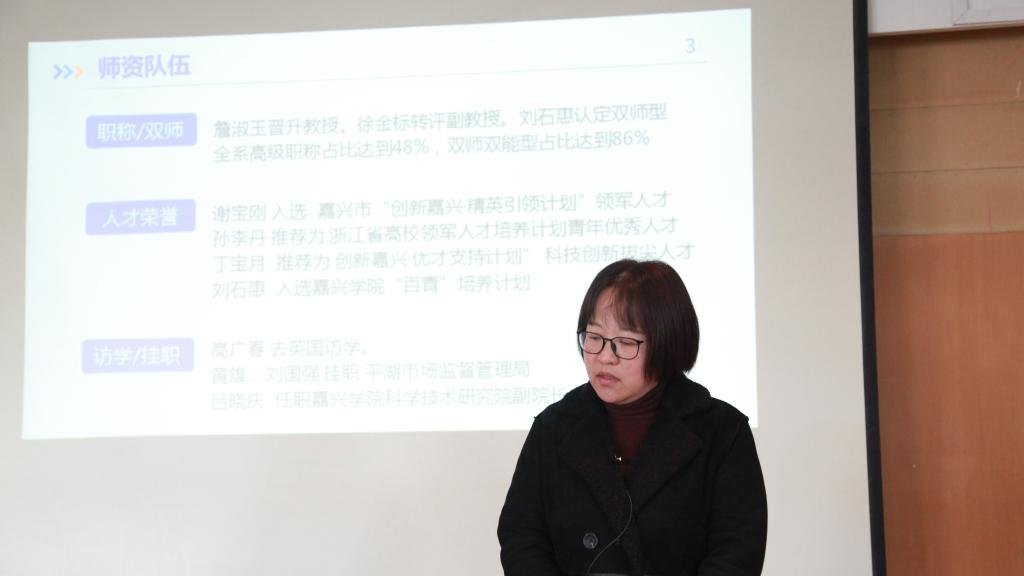 团队队伍建设方面。加强内培外引,团队队伍建设水平进一步提高。2021年新入选浙江省高校领军人才推荐人选1人,入选创新嘉兴精英引领领军人才2人,入选“百青”培养人才2人,国内访学1人,国外进修1人,校内外企事业单位挂职教师5人,在职攻读博士学位2人。