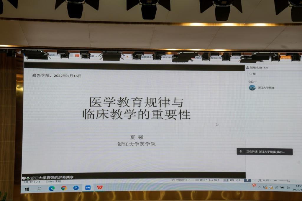 第一阶段会议最后,浙江大学yl永利集团官网登录教学研究中心副主任夏强教授通过线上视频向全体参会人员作了《医学教育规律与临床教学的重要性》的讲座。