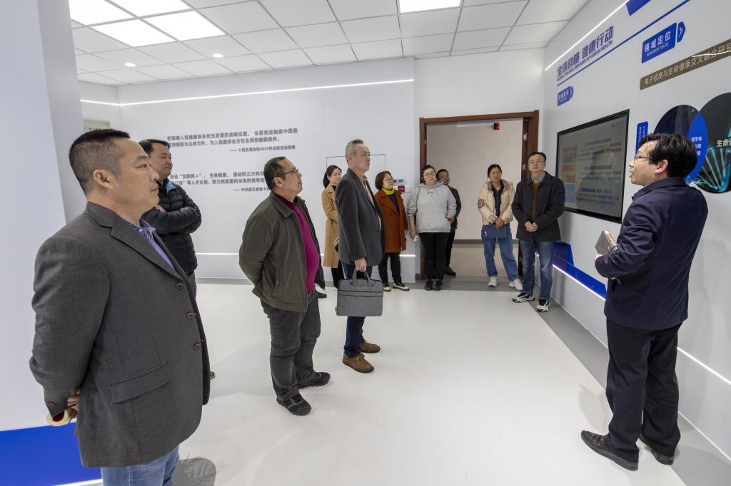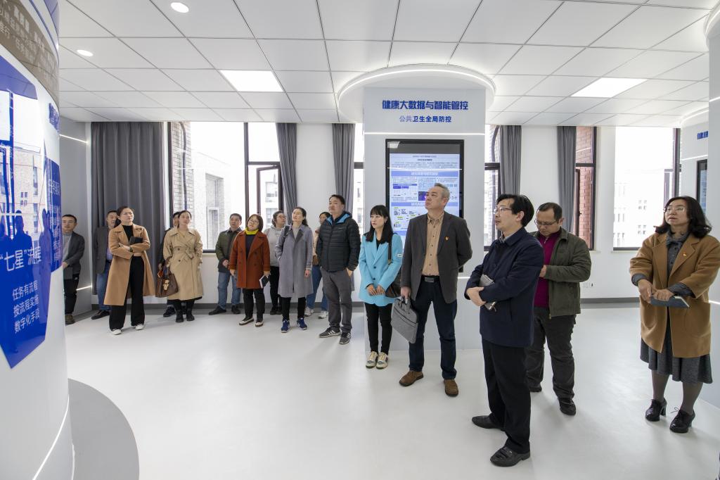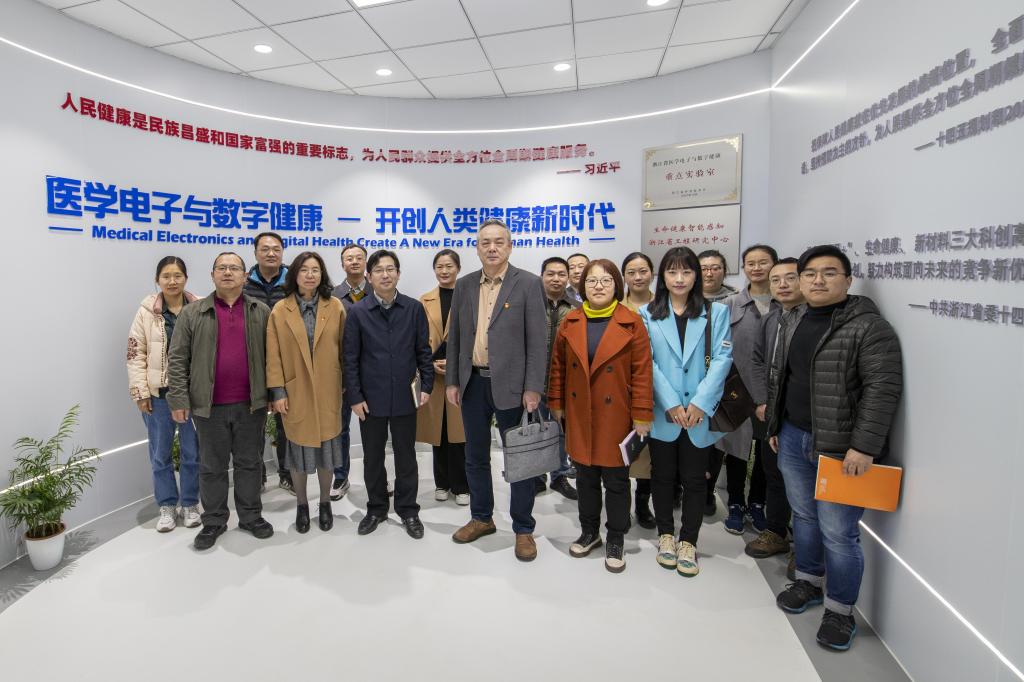 信息网络与智能研究院张先超执行经理带领大家参观了浙江省医学电子与数字健康重点实验室展厅,讲解了实验室构建医学电子与数字健康价值体系、产业体系与创新体系等三大体系的任务,以及生理/生物信息智能感知、健康信息网络与安全、健康大数据与智能管控等研究方向。参观结束后,大家关于如何开展医学与信息交叉融合科研进行了深入交流、讨论。