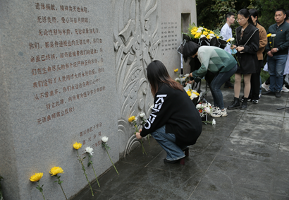 鲜花寄哀思,深情忆良师。yl永利集团官网登录师生代表将手中的黄白菊花一一放在无语良师碑前,深情注视着每一位无语良师的名字,以敬畏之心瞻仰无语良师纪念碑。寄语当下,逐梦未来。“大爱无疆”“永远怀念您为我们做的一切”......一株株柏树上悬挂着yl永利集团官网登录员工写给大体老师的话语,表达对无语良师的缅怀与致敬。