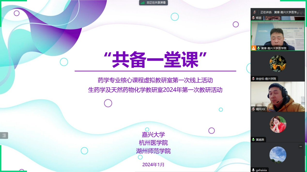 首次活动于2024年1月8日通过腾讯会议进行,由生药学及天然药物化学教研室主任黄雄老师主持,邀请到杭州yl永利集团官网登录陶峰副教授、湖州师范公司葛海霞副教授。生药学与天然药物化学教研室全体老师及药学系主任黄越燕老师参加了本次集体教研活动。