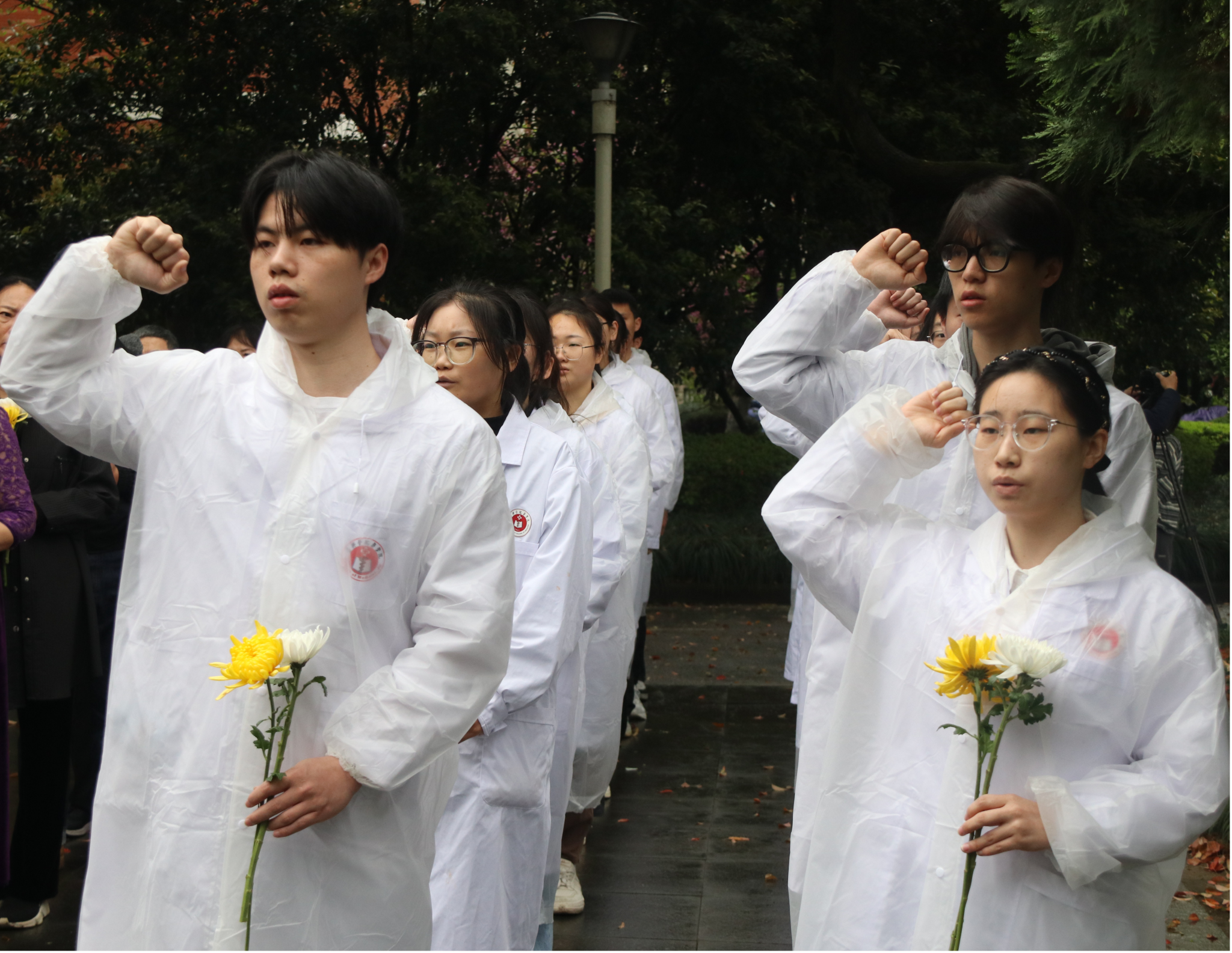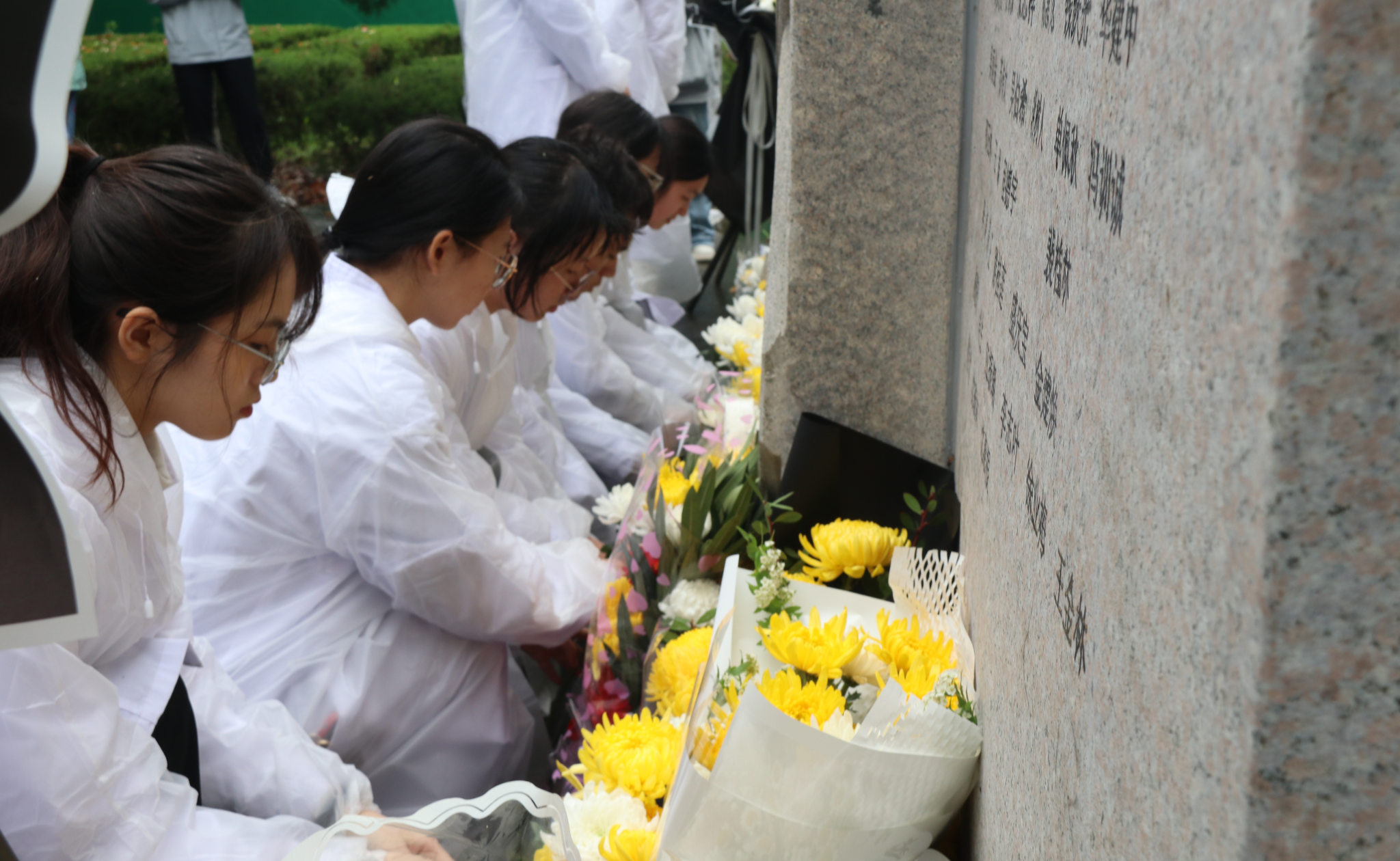 无言教导,掷地有声。截至目前,石碑上已镌刻146位遗体捐献者和167位器官(组织)捐献者的姓名。大体老师用自己的身躯做教材,传授医员工们宝贵的人体知识。“健康所系、性命相托。当我步入神圣医学学府的时刻,谨庄严宣誓:我志愿献身医学,热爱祖国,忠于人民,恪守医德,尊师守纪……”员工代表们紧握右拳,目光坚定,声音嘹亮,用铿锵誓言表达“除人类之病痛,助健康之完美”的初心和使命,刻苦钻研、勤于实践,决不辜负大体老师的殷殷期盼和无私奉献。