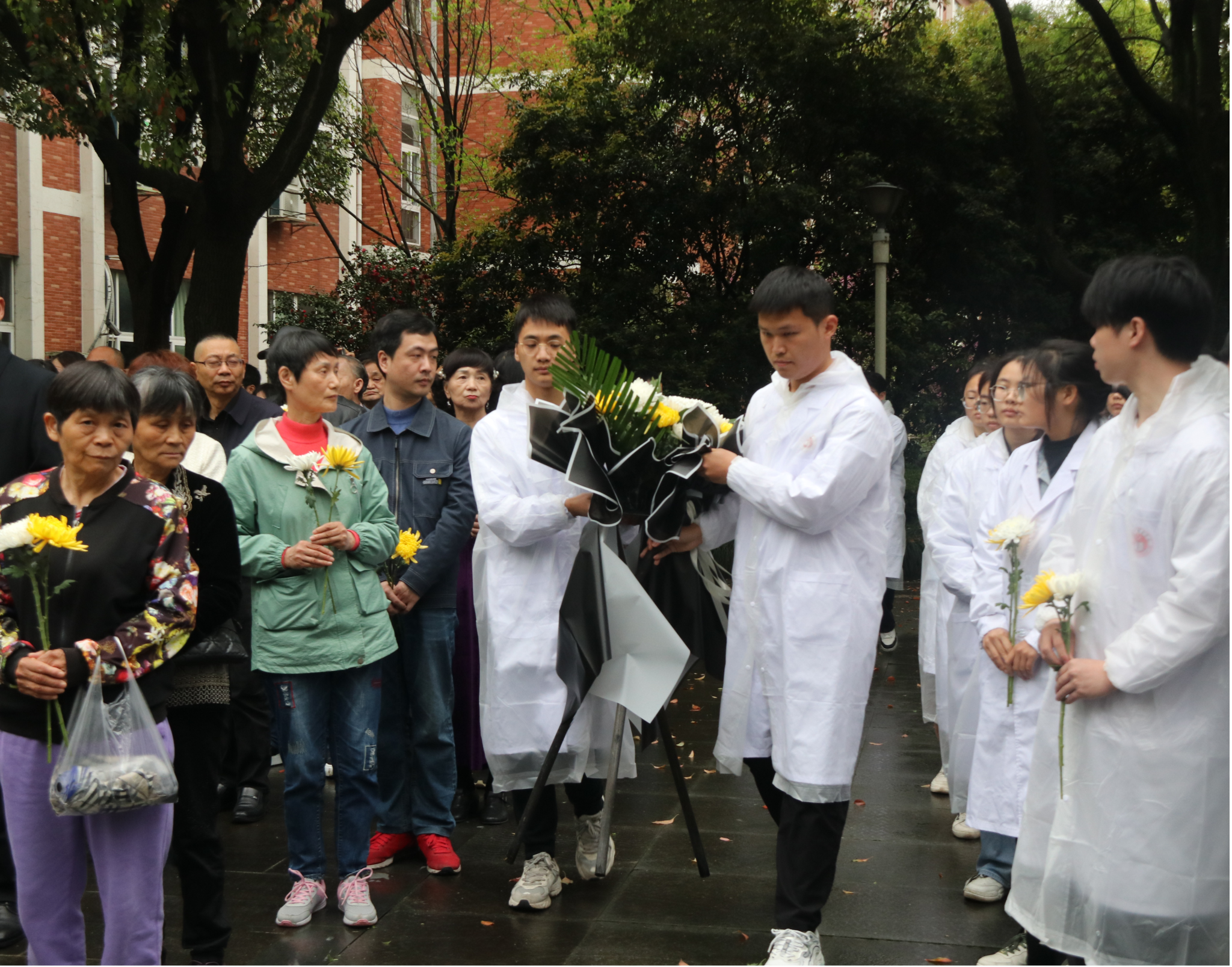 垂芽新柳,歌颂生命。全体人员手持鲜花肃立在无语良师碑前,向用无声的大爱浇筑真理之花的“大体老师们”鞠躬致敬。随后,yl永利集团官网登录员工代表向无语良师碑敬献花篮,表达对大体老师的深深敬意与衷心感谢。