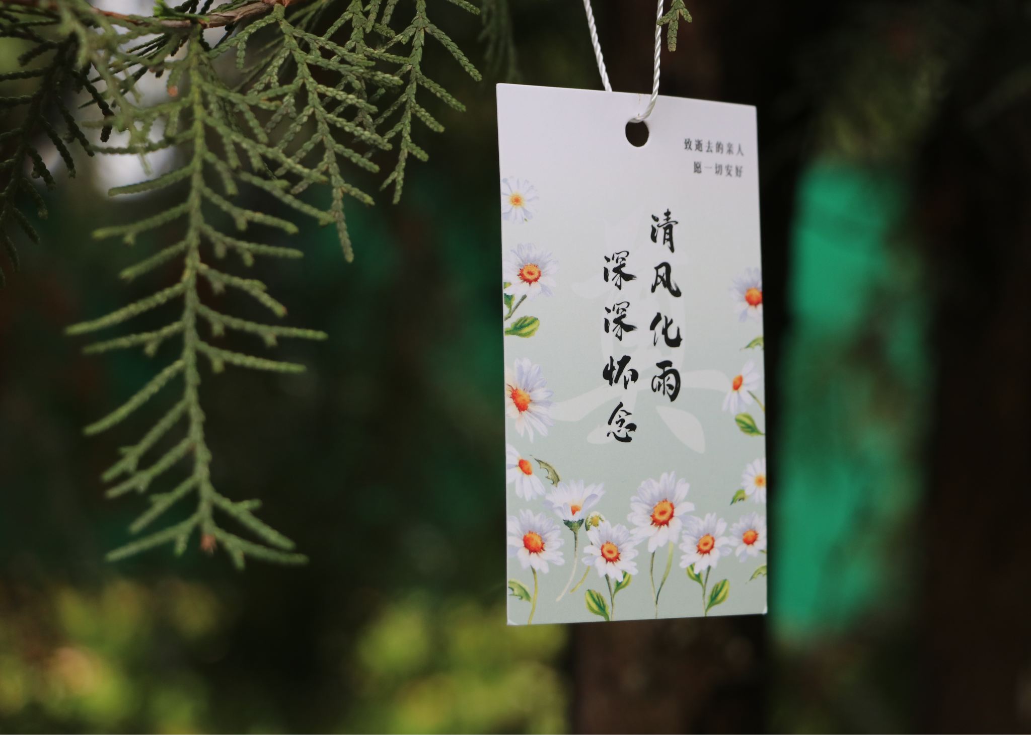 烛影长明,照杏林春满。默默无语,胜万语千言。师生代表,家属代表一一走到无语良师碑前,鞠躬、献花,泛红的眼圈、沉重的脚步、洒落的泪珠、停留在捐献者名字上久久不愿放下的双手……这一幕幕都深深触动着每一位医员工的心。寄语松梢,思情未来。员工们在卡片上写下自己的祝愿与梦想,敬意与期望,用一笔一划组成的注脚表达对无语良师的缅怀和敬意。虽然未曾谋面,但这份跨越时空的大爱与精神,已被同学们铭记于心。