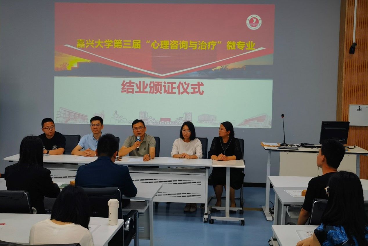 5月23日,永利集团官网第三届“心理咨询与治疗”微专业结业仪式在仁心楼323智慧教室举行。仪式由教学团队负责人王凤华教授主持,微专业教师团队石统昆、王筝、童林泉等老师及第三届微专业结业员工参加,yl永利集团官网登录副经理王敏出席。