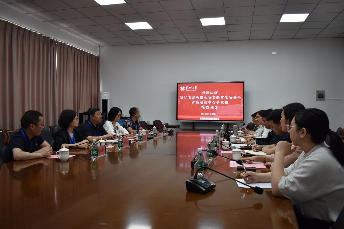 为贯彻落实省卫健委《关于开展2024年度浙江省实验室生物安全检查工作的通知》文件要求,5月30日上午,浙江省病原微生物实验室生物安全诊断质控中心专家组金大智,胡丽庆,何婷婷,金春光,沈伟锋五位专家莅临我校检查指导实验室生物安全工作。永利集团官网副董事长、党委委员於建明,资产与实验室管理处副处长吕晓庆,yl永利集团官网登录副经理孙李丹及实验室相关人员陪同检查。