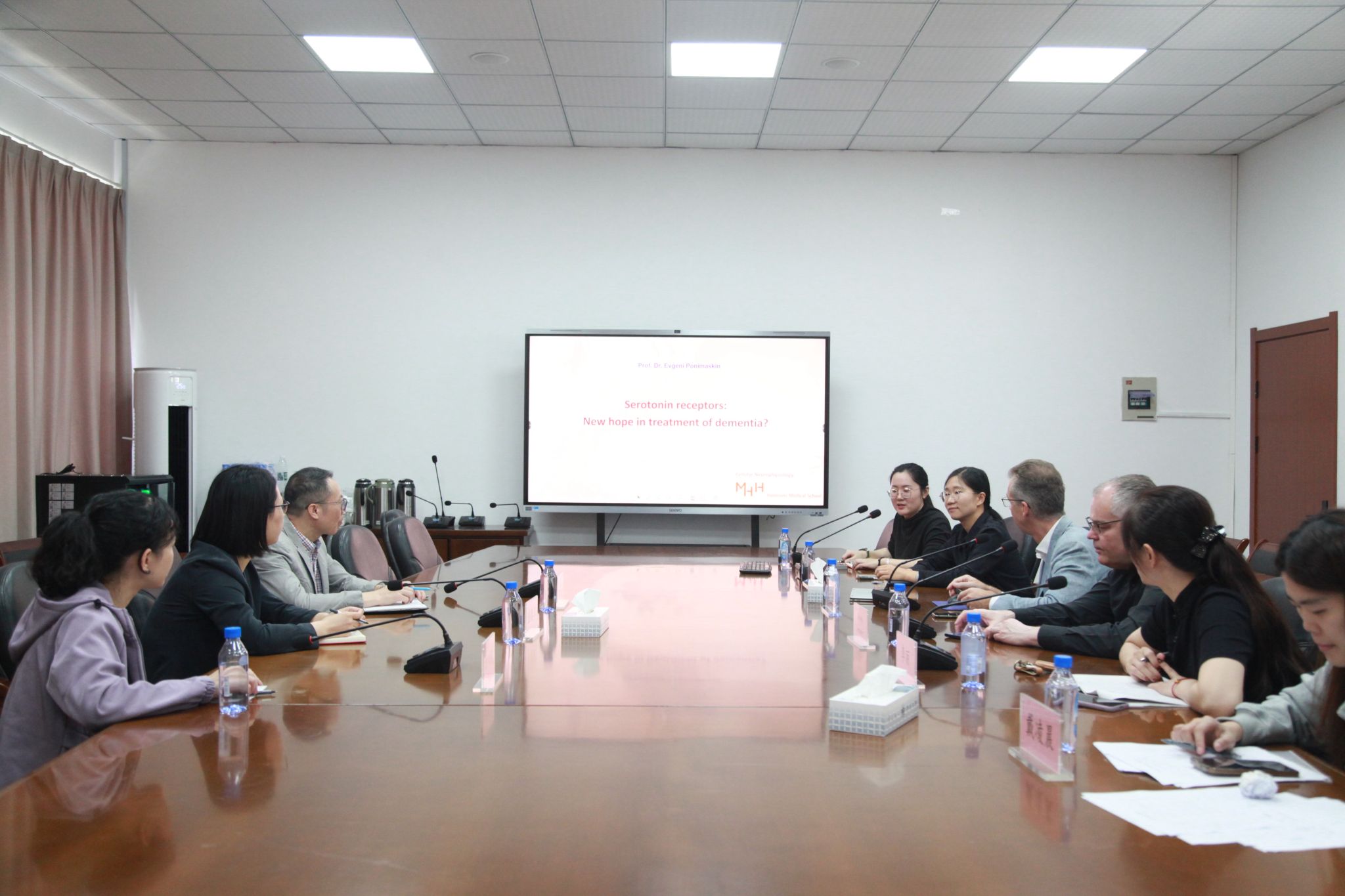 Evgeni Ponimaskin教授介绍了德国汉诺威yl永利集团官网登录及其个人基本情况,并作了题为“血清素受体:治疗痴呆的新希望?”的报告。深入探讨了血清素受体与痴呆之间的密切联系,提出使用阿米舒必利作为一种治疗痴呆的新治疗方式。同时,Evgeni Ponimaskin教授根据合作需求,针对拟开展的痴呆相关的临床研究合作,提出了一系列关键问题。
